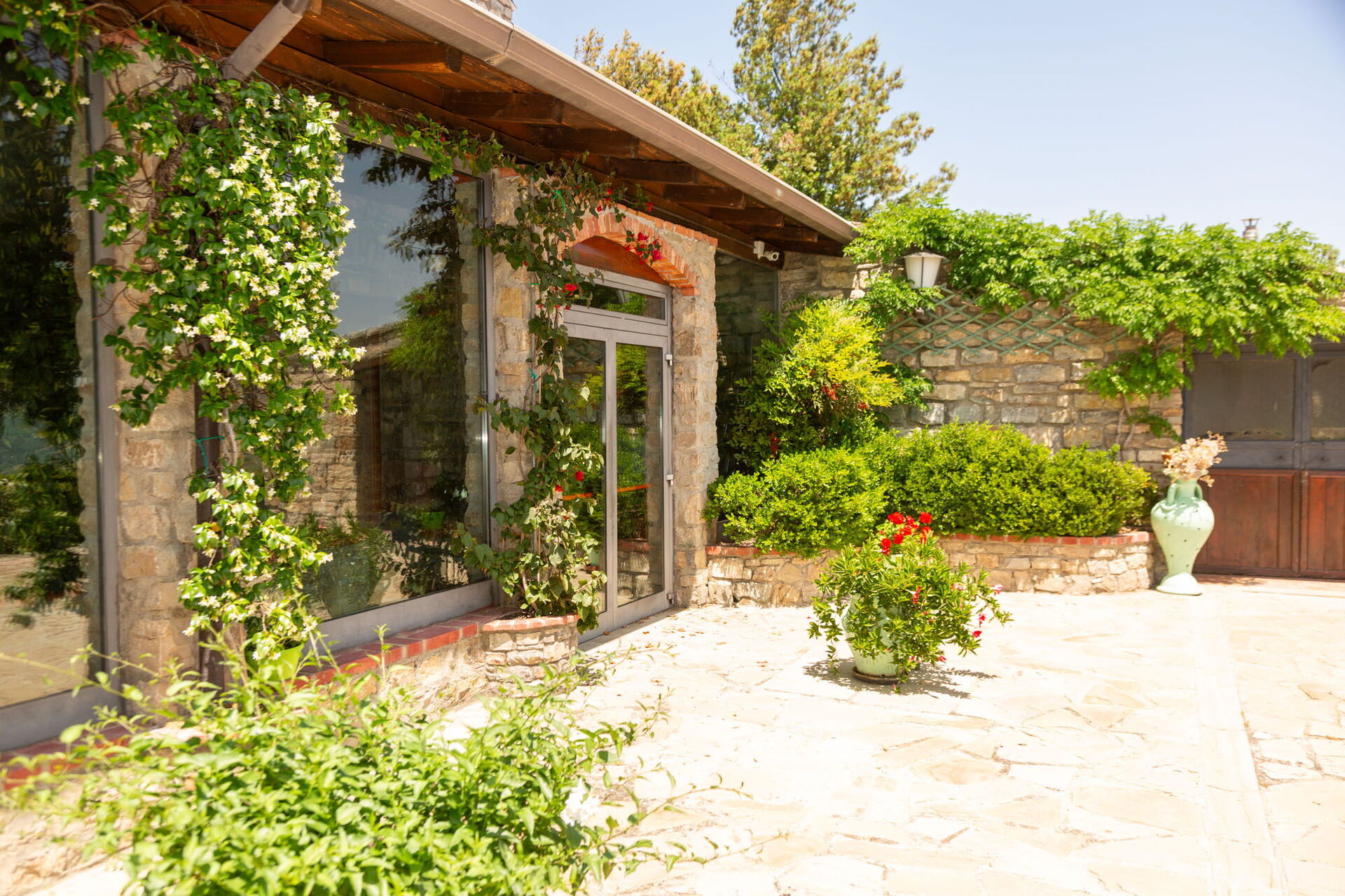 Das gesamte Gelände ist mit Hecken aus Heilpflanzen, Glanzmispeln, Kirschlorbeer und Feuerdorn sowie Rosenbüschen und Blumen geschmückt. Elegante Kletterpflanzen an einigen Hauswänden verleihen dieser Oase der Ruhe und des Grüns einen Hauch von Farbe.