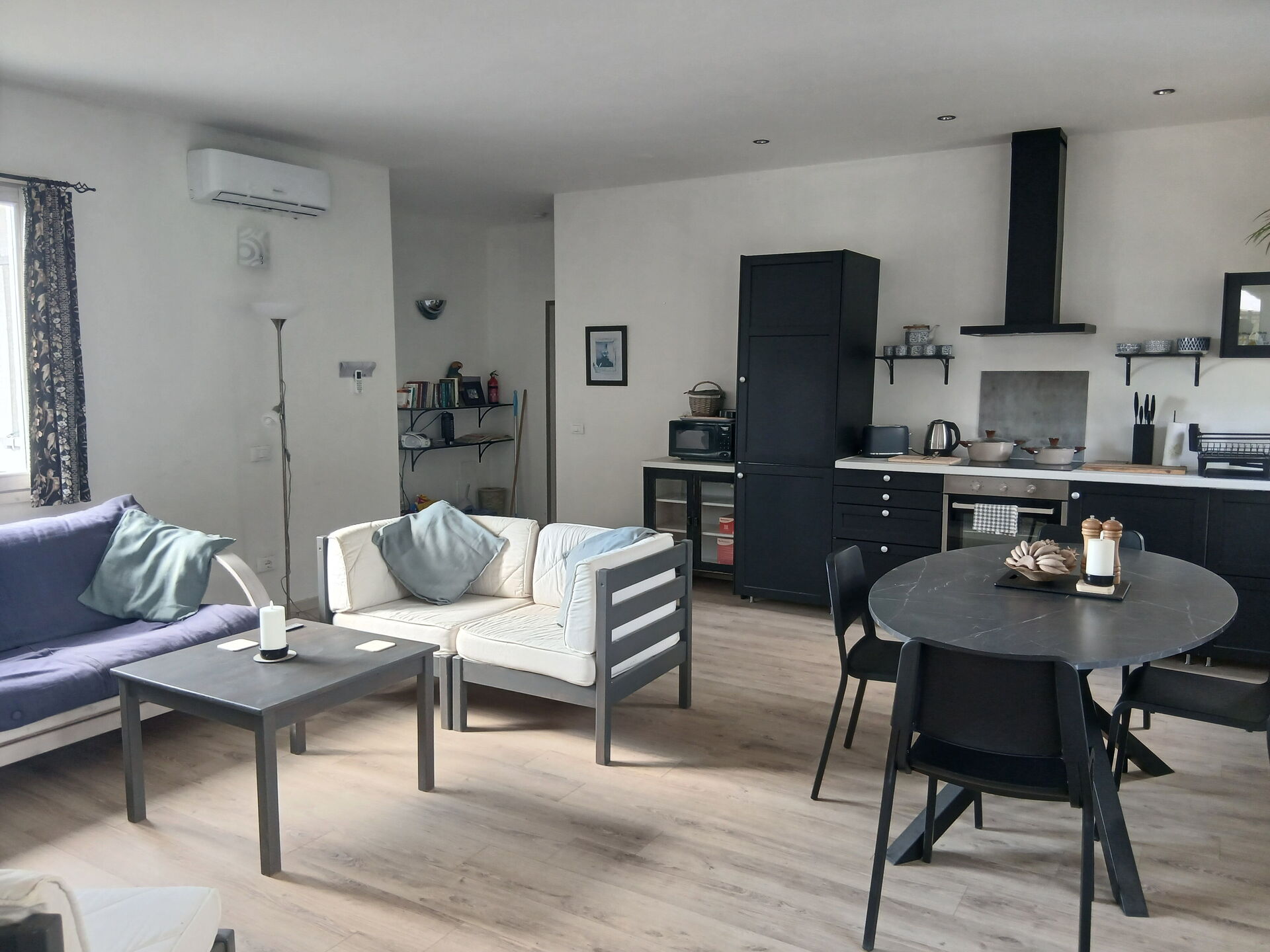 Wohnküche (30 m2): gut ausgestattete Küche, Esstisch, WiFi Internet, Satelliten-TV, CO2 Detektor.