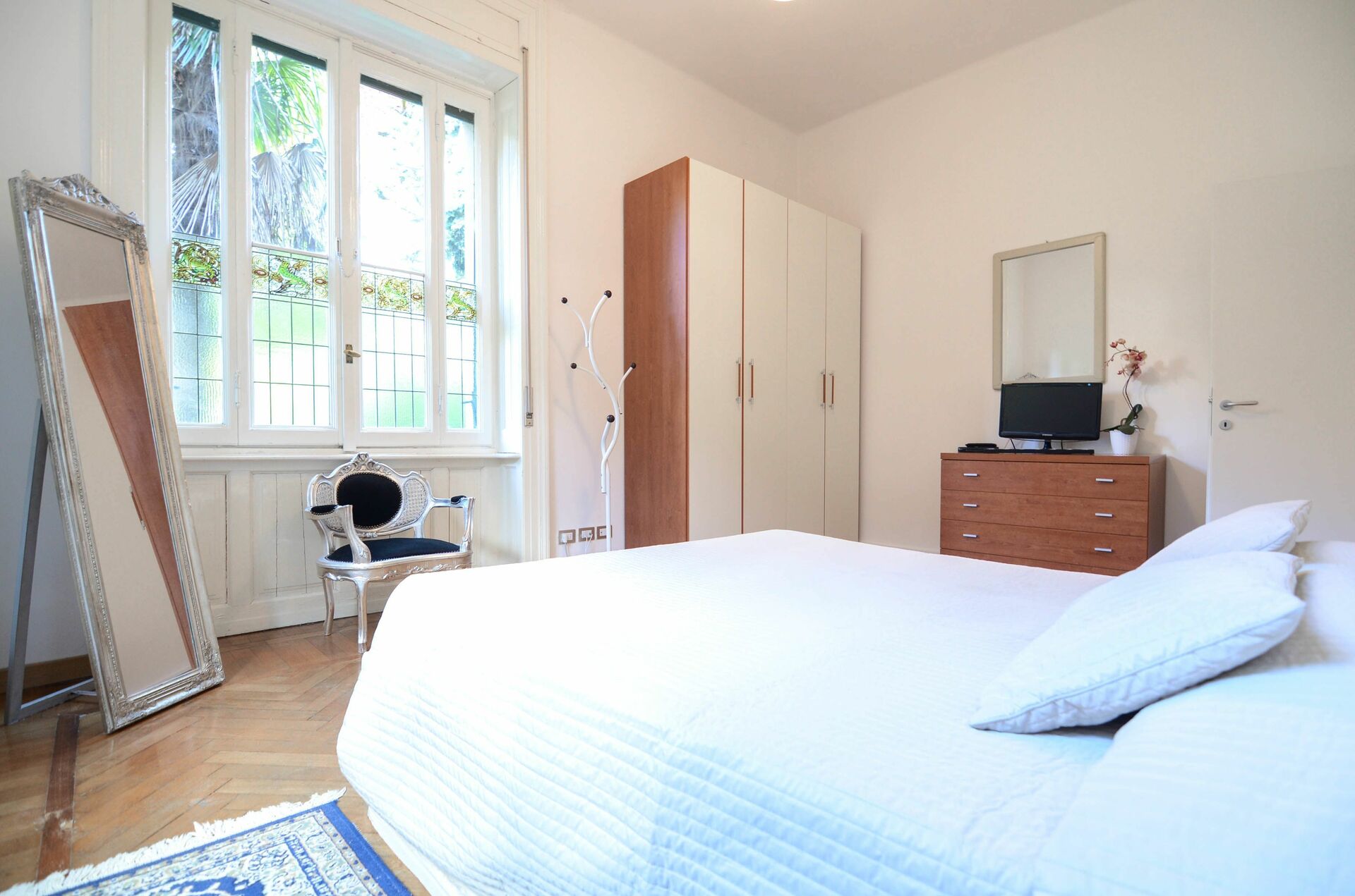 Das Apartment verfügt über 2 große Doppelzimmer mit wertvollen Glasfenstern, Kingsize-Betten und Klimaanlage sowie einen Flachbild-TV.