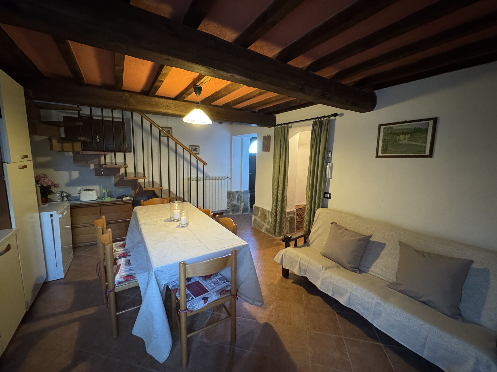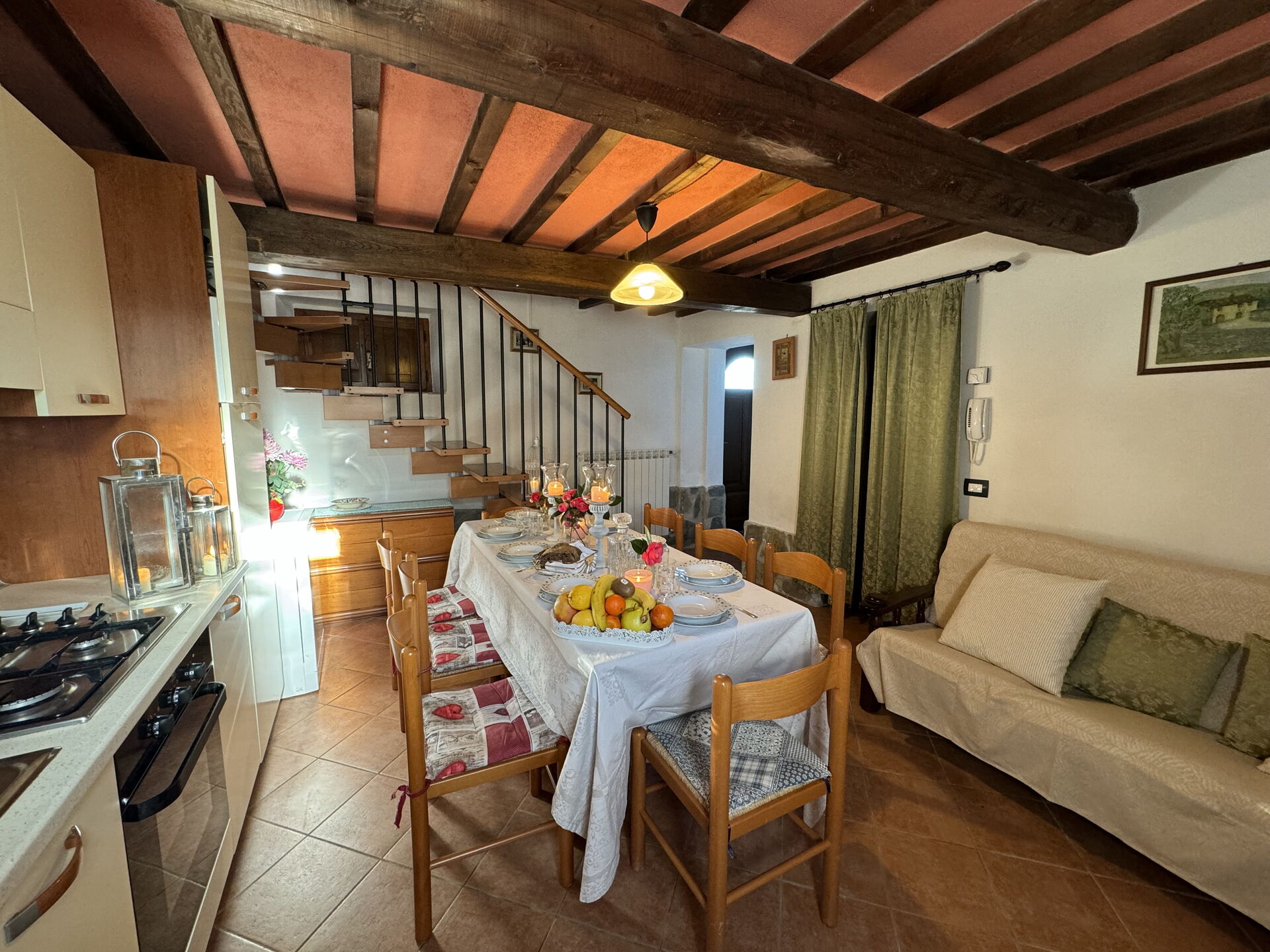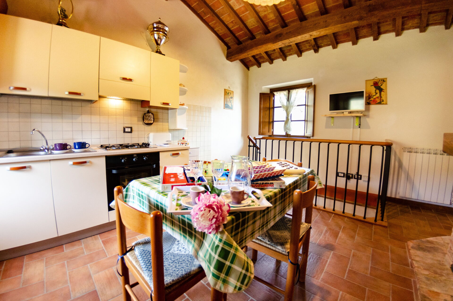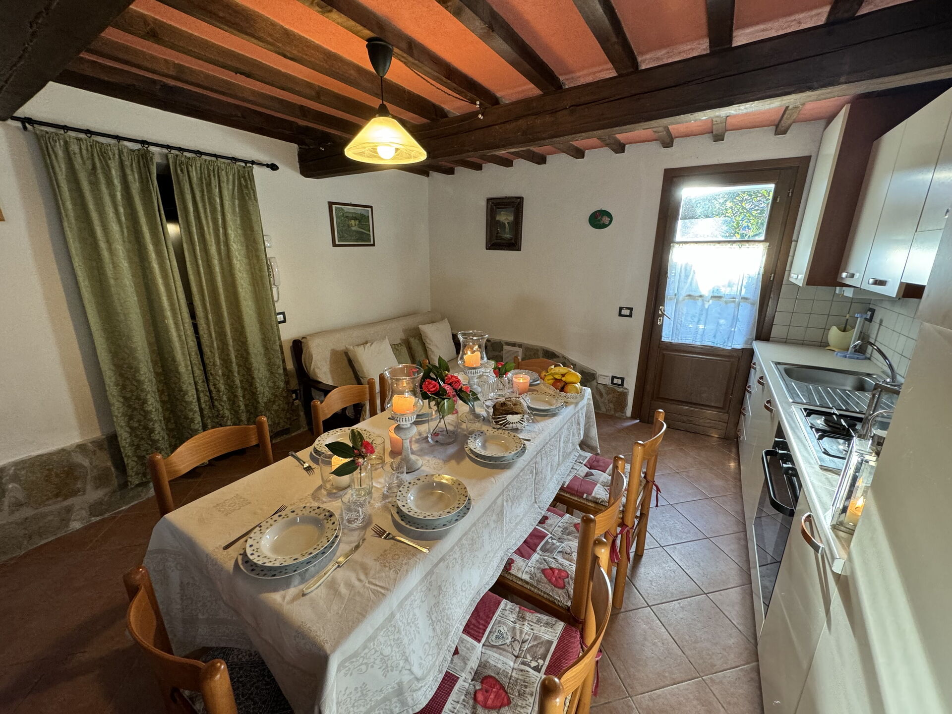 Nach Ankunft werden Sie eine hübsche, saubere und gut gepflegte Unterkunft finden, mit Ausblick auf der Hügel ideal für einen erholsamen Toskana-Urlaub. Zum Zeitvertreib gibt es hier einen Pool wo Sie sich nach Ihrem beschäftigten Tag, den Sie mit Sightseeing verbracht haben, entspannen können, während Sie ein erfrischendes, kühles Getränk zu sich nehmen. Essen mit Freunden und Familie ist ein großer Bestandteil der toskanischen Kultur. Nutzen Sie die Küche, um Mahlzeiten aus lokalen Produkten vorzubereiten, während Sie im Urlaub sind. Die Küche kommt mit Herd und Kühlschrank, sowie ausreichend Geschirr und Besteck für bis zu acht Personen. Speisen Sie 'al Fresco' wie ein echter Toskaner - die komplett eingerichtete Terrasse ist eine ideale Kulisse, um das Essen, die Familie und das hübsche toskanische Wetter zu genießen.