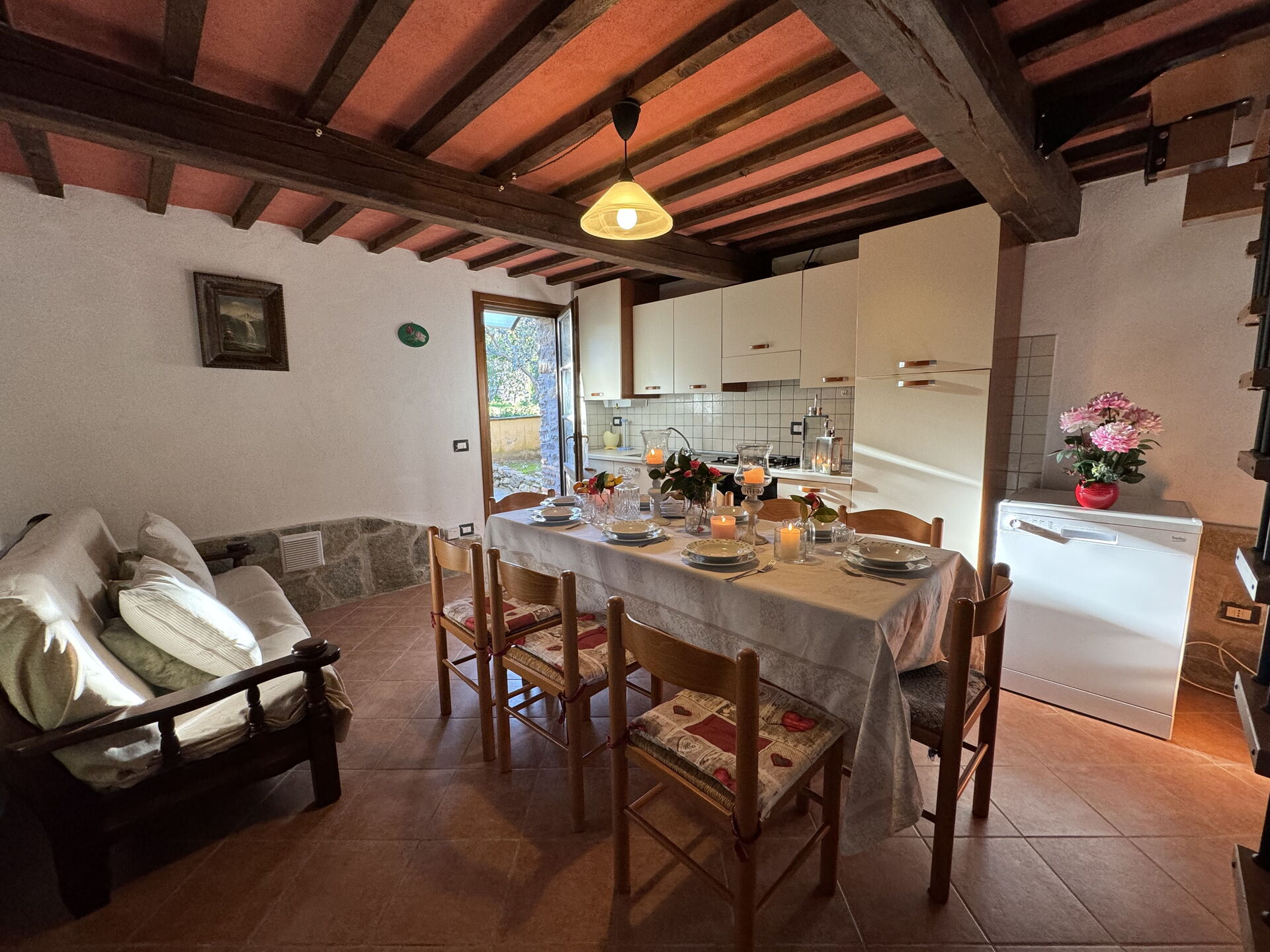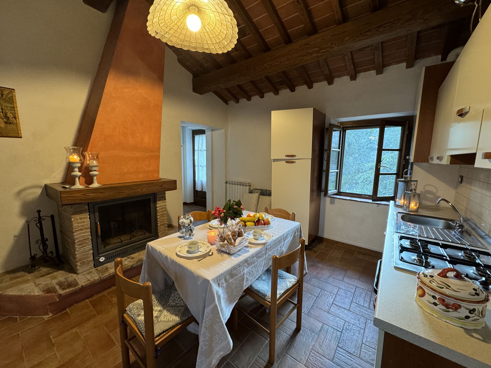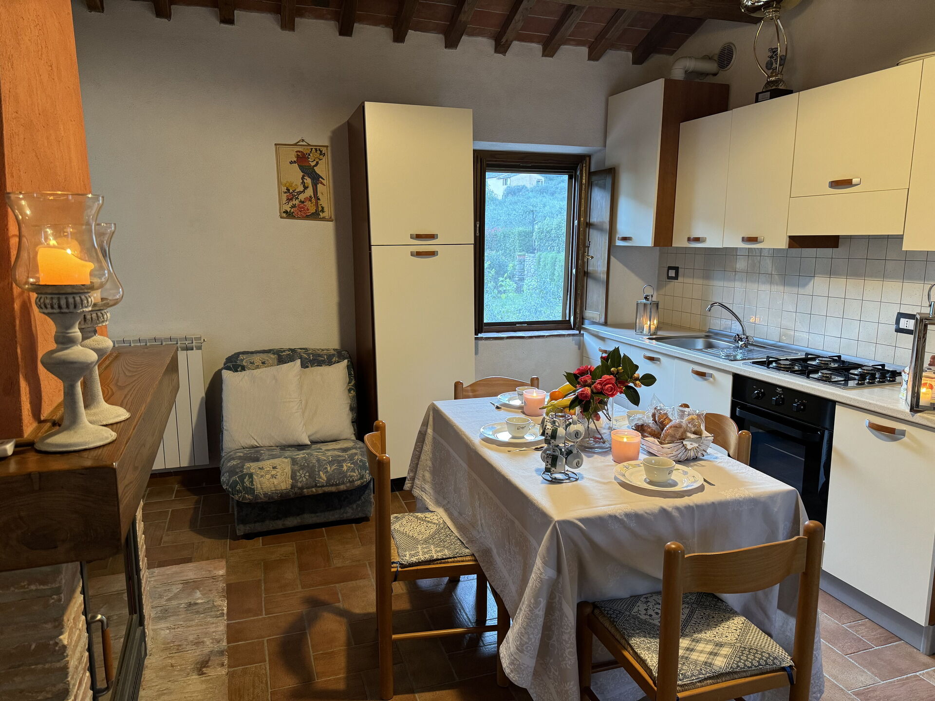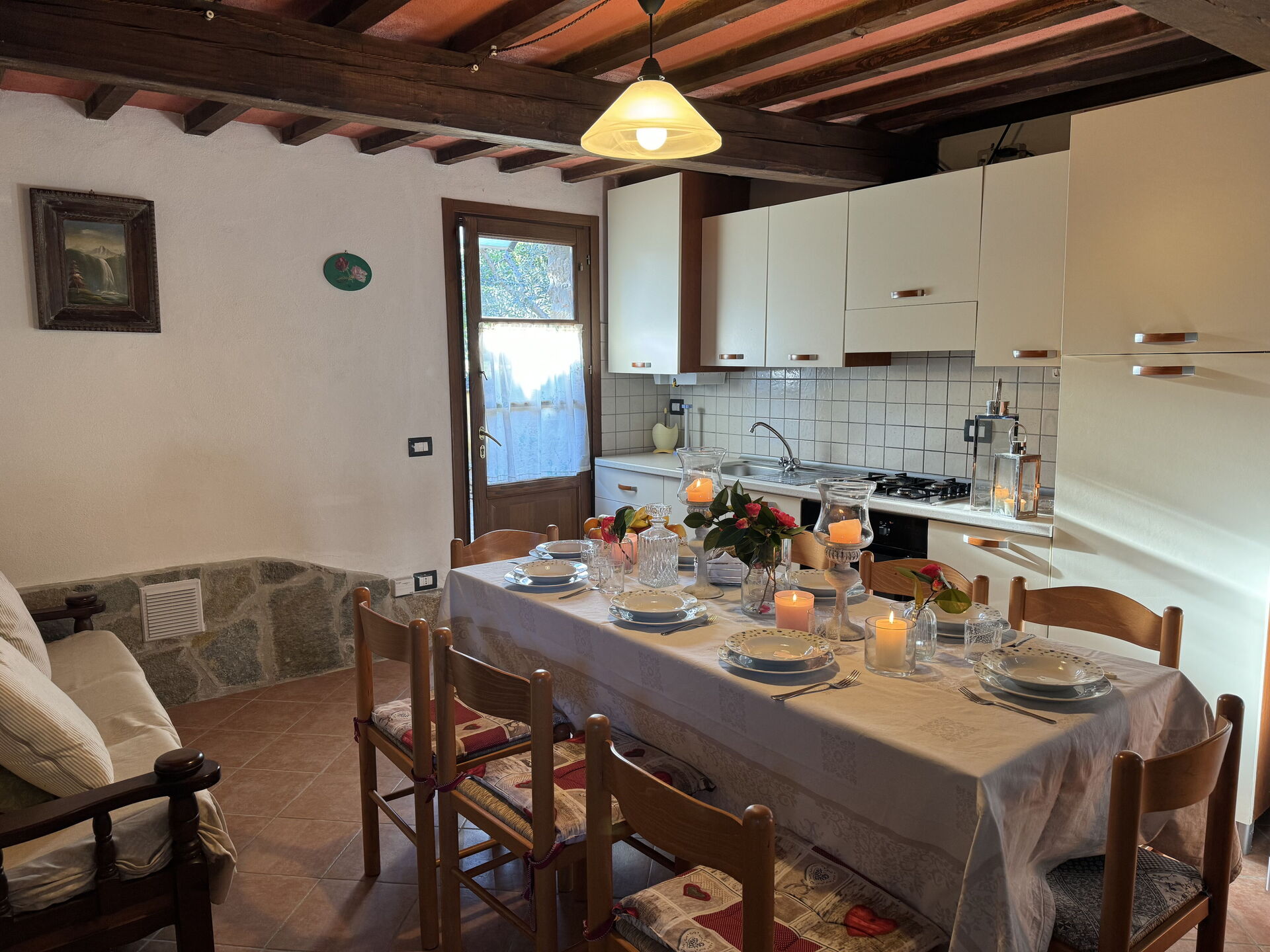 Nach Ankunft werden Sie eine hübsche, saubere und gut gepflegte Unterkunft finden, mit Ausblick auf der Hügel ideal für einen erholsamen Toskana-Urlaub. Zum Zeitvertreib gibt es hier einen Pool wo Sie sich nach Ihrem beschäftigten Tag, den Sie mit Sightseeing verbracht haben, entspannen können, während Sie ein erfrischendes, kühles Getränk zu sich nehmen. Essen mit Freunden und Familie ist ein großer Bestandteil der toskanischen Kultur. Nutzen Sie die Küche, um Mahlzeiten aus lokalen Produkten vorzubereiten, während Sie im Urlaub sind. Die Küche kommt mit Herd und Kühlschrank, sowie ausreichend Geschirr und Besteck für bis zu acht Personen. Speisen Sie 'al Fresco' wie ein echter Toskaner - die komplett eingerichtete Terrasse ist eine ideale Kulisse, um das Essen, die Familie und das hübsche toskanische Wetter zu genießen.