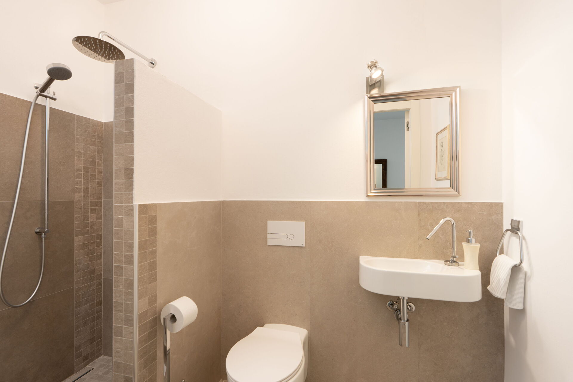 Badezimmer: Waschbecken, WC, Bidet, Dusche, WiFi Internet, Klimaanlage, Fliegengitter, Ohne Fenster.