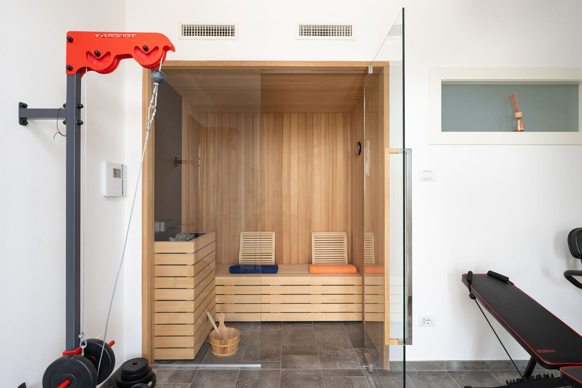 Fitnessraum: Fitnessgeräte, WiFi Internet, Klimaanlage, Sauna.