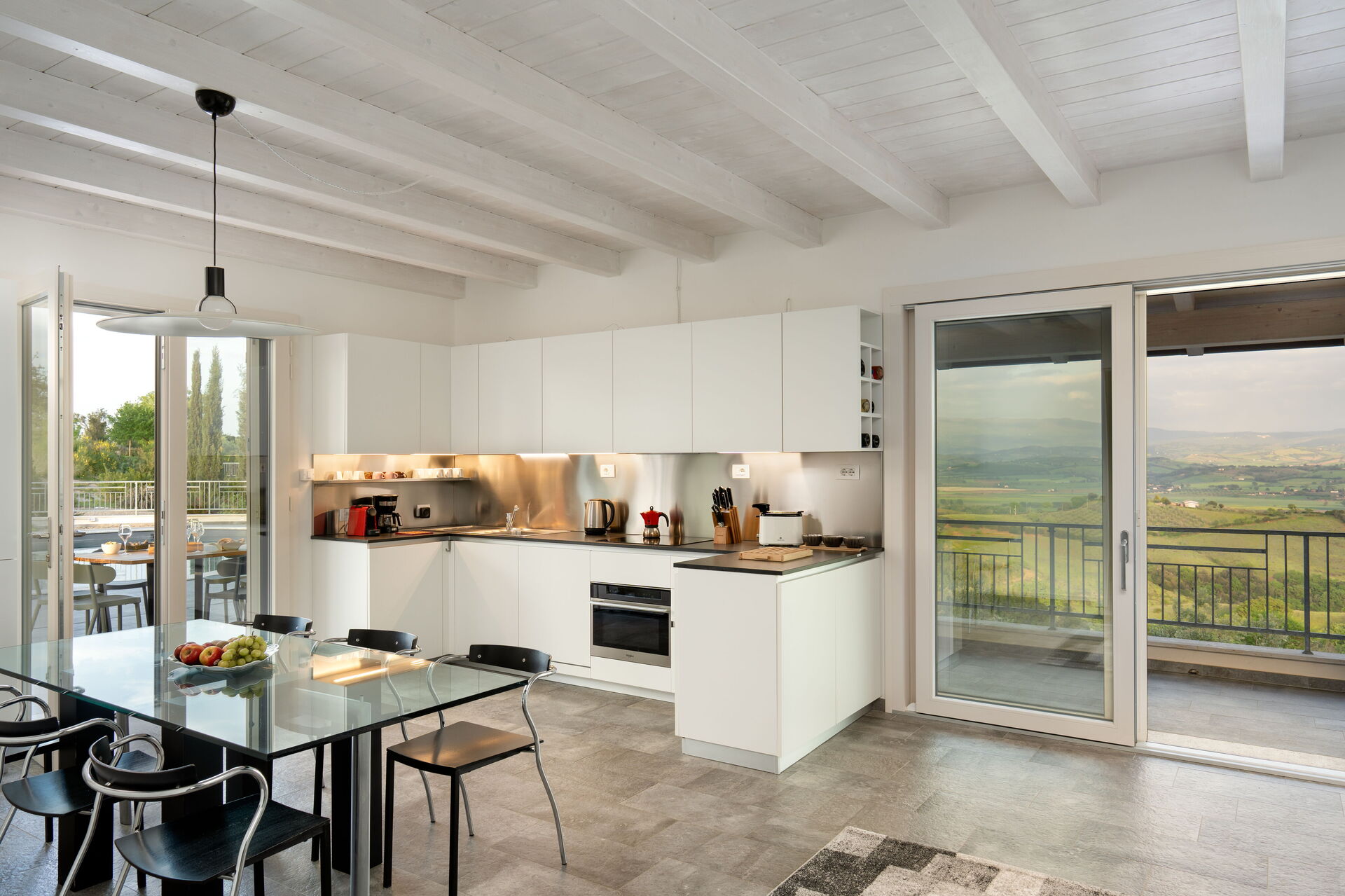 Wohnküche (29.83 m2): gut ausgestattete Küche, Esstisch (Personen: 6), Spülmaschine, Kühlschrank, Tiefkühler, Mikrowelle, Herd, Ofen, Toaster, Italienische Kaffeemaschine, Amerikanische Kaffeemaschine, WiFi Internet, Klimaanlage, Fliegengitter, CO2 Detektor, Ausgang auf die Terrasse.