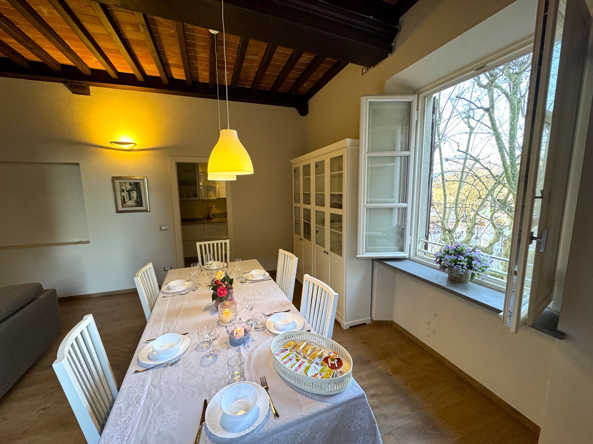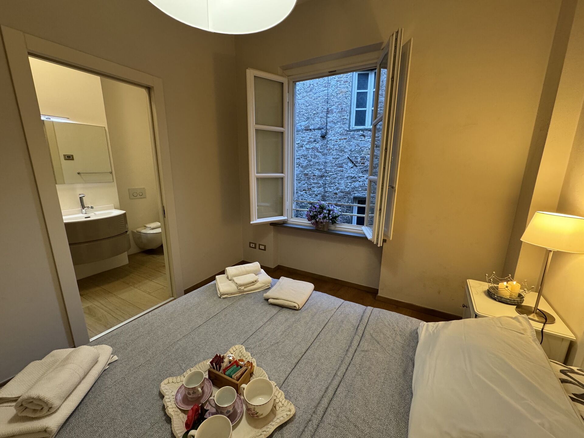 Die Gäste können einen Spaziergang auf der von Bäumen gesäumten Stadtmauer unternehmen, die nur wenige Schritte von der Wohnung entfernt liegt und einen privilegierten Blick auf die Stadt bietet. Von der 12 m hohen Mauer aus hat man einen einzigartigen Blick auf die wichtigsten Monumente, die Glockentürme, den Palazzo Pfanner mit seinem Garten, den Torre Guinigi mit seinen Steineichen und den Botanischen Garten.