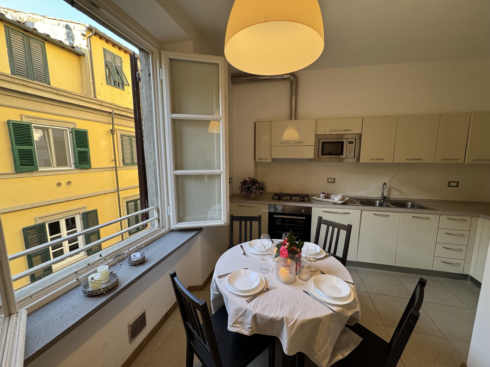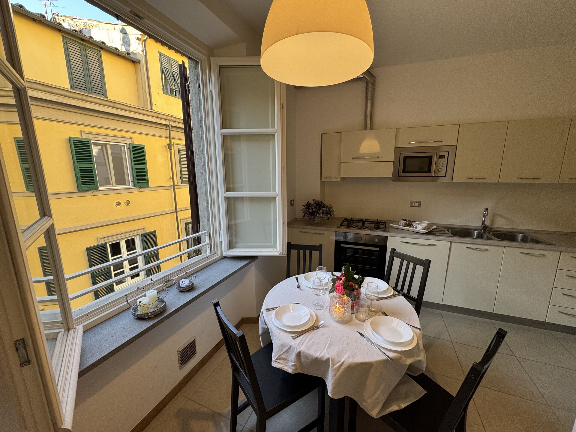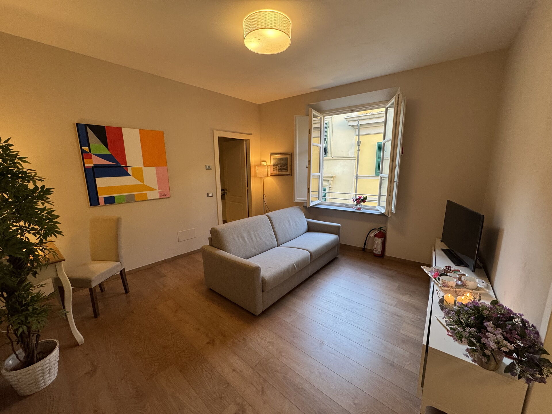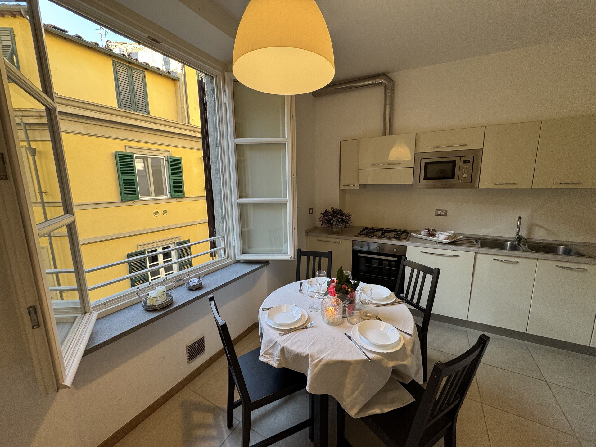 Nach Ankunft werden Sie eine hübsche, saubere und gut gepflegte Unterkunft finden, mit Ausblick auf die Stadt perfekt für einen friedlichen Toskana-Urlaub. Egal womit Sie Ihre Tage hier verbringen - Einkaufen, Sightseeing, Museumsbesuche oder einfach nur durch die Landschaft fahren, wenn Sie wieder in Ihrem Ferienheim ankommen, können Sie sich mit Familie und Freunden entspannen, um Ihren Toskana-Tag perfekt ausklingen zu lassen. Wenn Sie gerne für Familie und Freunde kochen, werden Sie sich über die gut ausgestattete Küche freuen mit Kaffeemaschine, Mikrowelle, Toaster, Herd und Kühlschrank, sowie ausreichend Geschirr und Besteck für bis zu vier Personen.