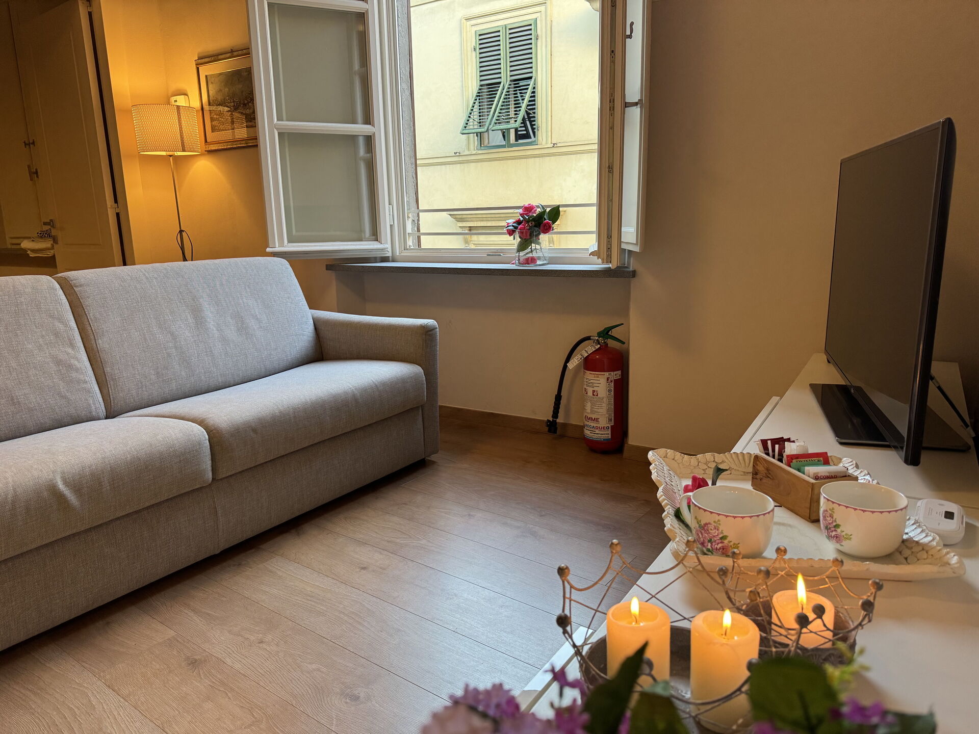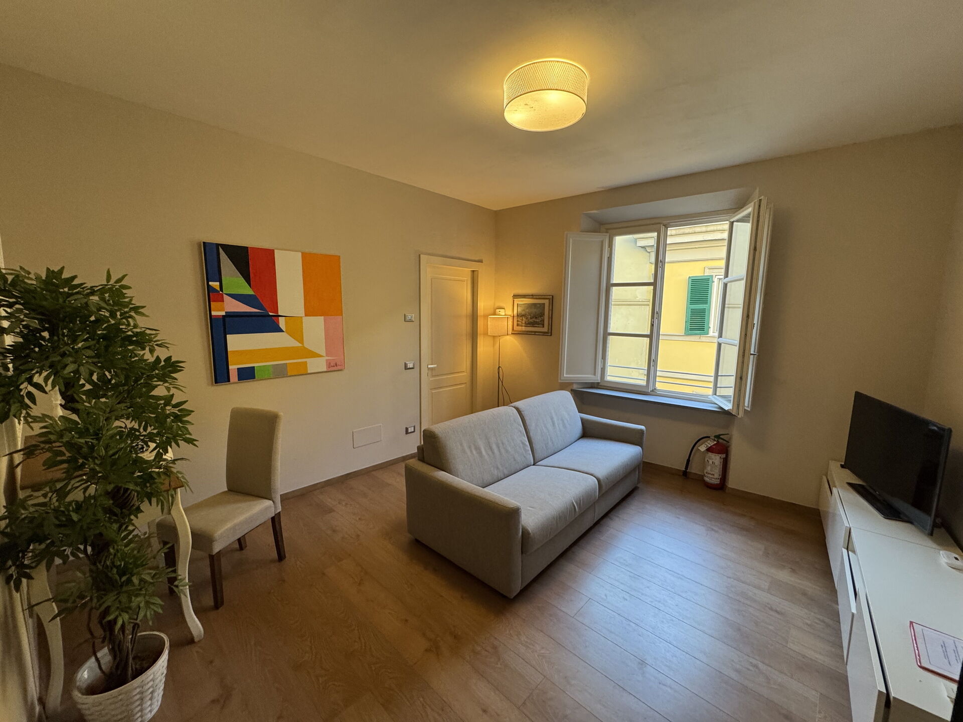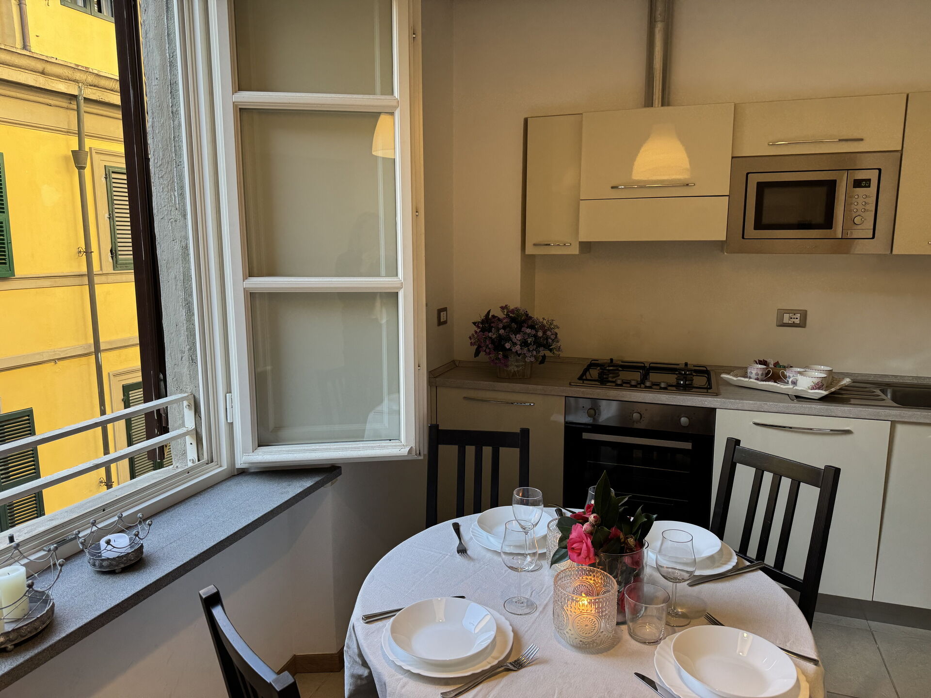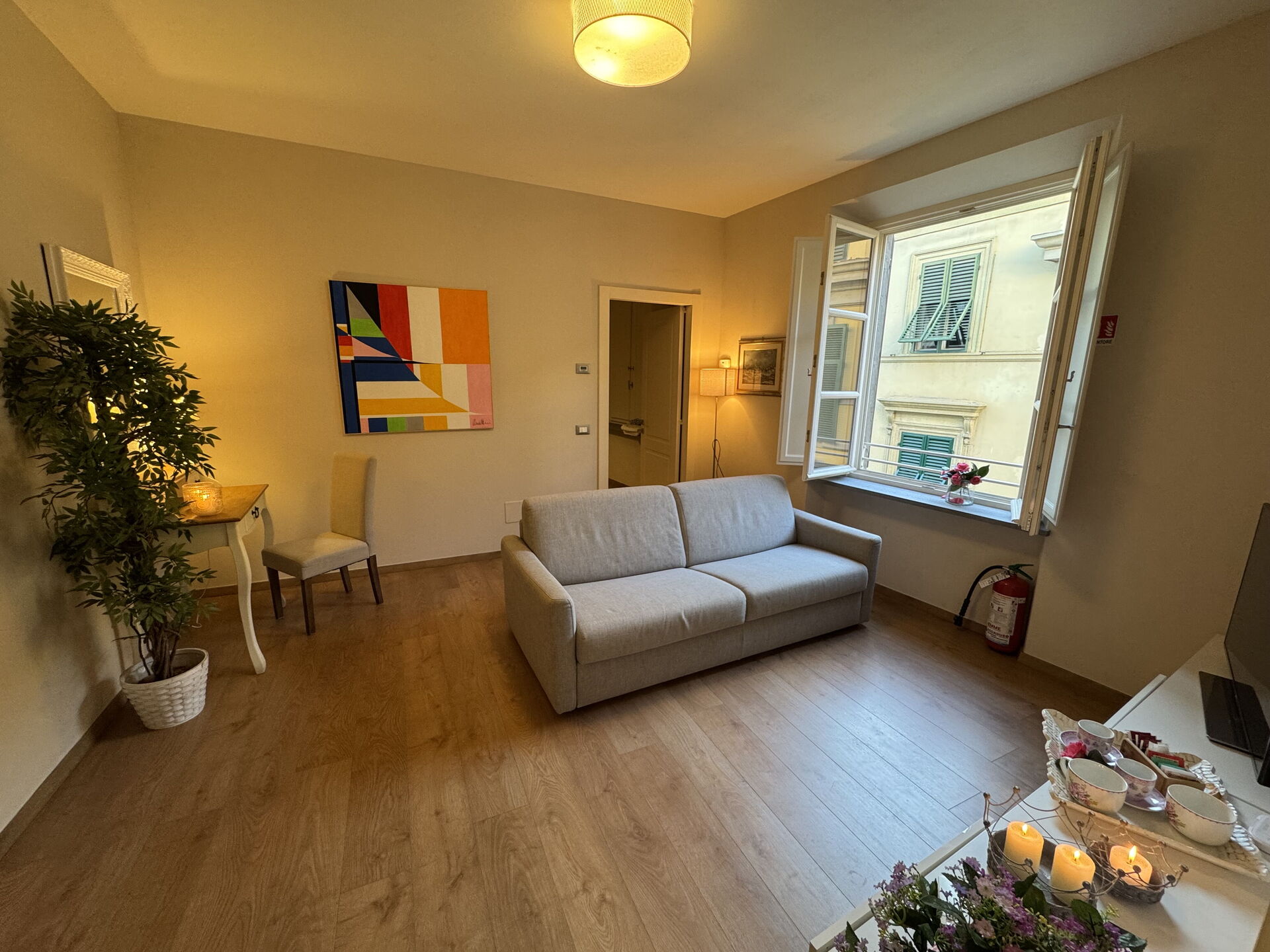 Nach Ankunft werden Sie eine hübsche, saubere und gut gepflegte Unterkunft finden, mit Ausblick auf die Stadt perfekt für einen friedlichen Toskana-Urlaub. Egal womit Sie Ihre Tage hier verbringen - Einkaufen, Sightseeing, Museumsbesuche oder einfach nur durch die Landschaft fahren, wenn Sie wieder in Ihrem Ferienheim ankommen, können Sie sich mit Familie und Freunden entspannen, um Ihren Toskana-Tag perfekt ausklingen zu lassen. Wenn Sie gerne für Familie und Freunde kochen, werden Sie sich über die gut ausgestattete Küche freuen mit Kaffeemaschine, Mikrowelle, Toaster, Herd und Kühlschrank, sowie ausreichend Geschirr und Besteck für bis zu vier Personen.