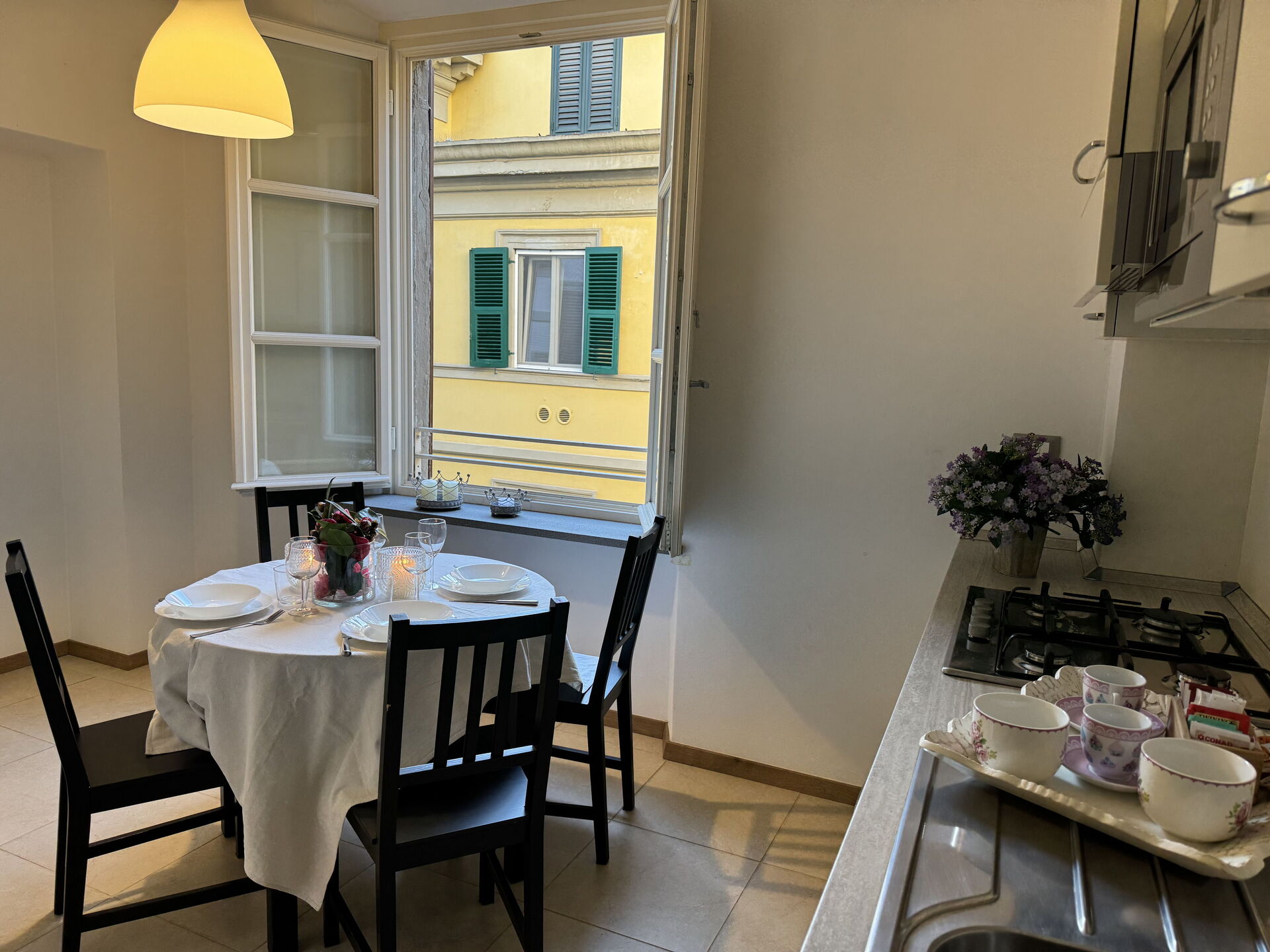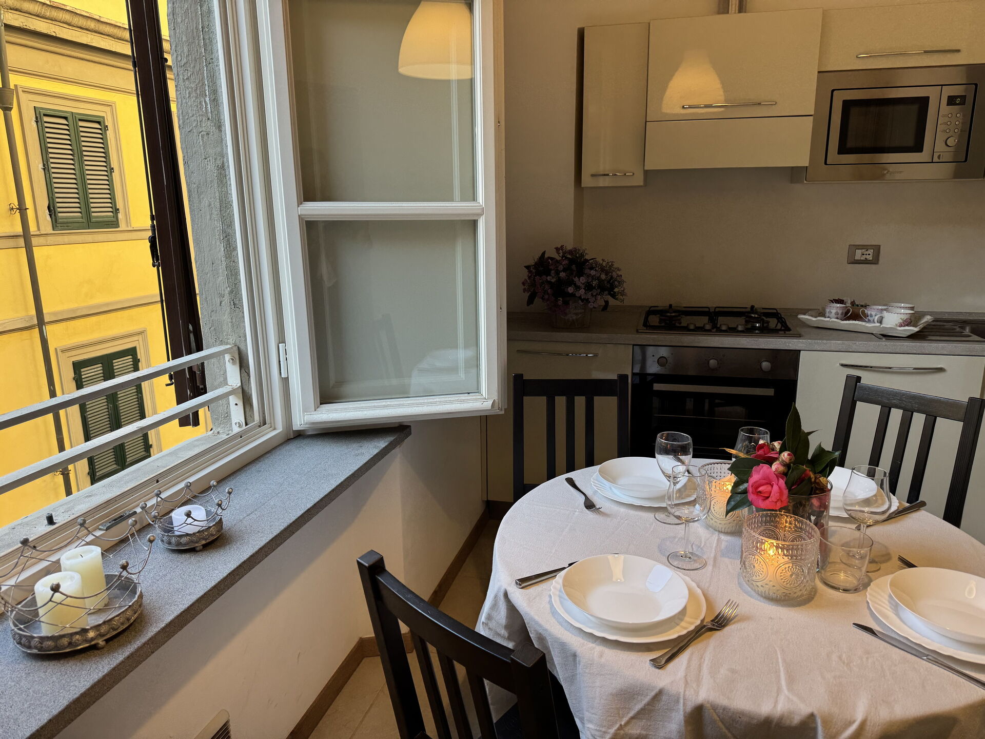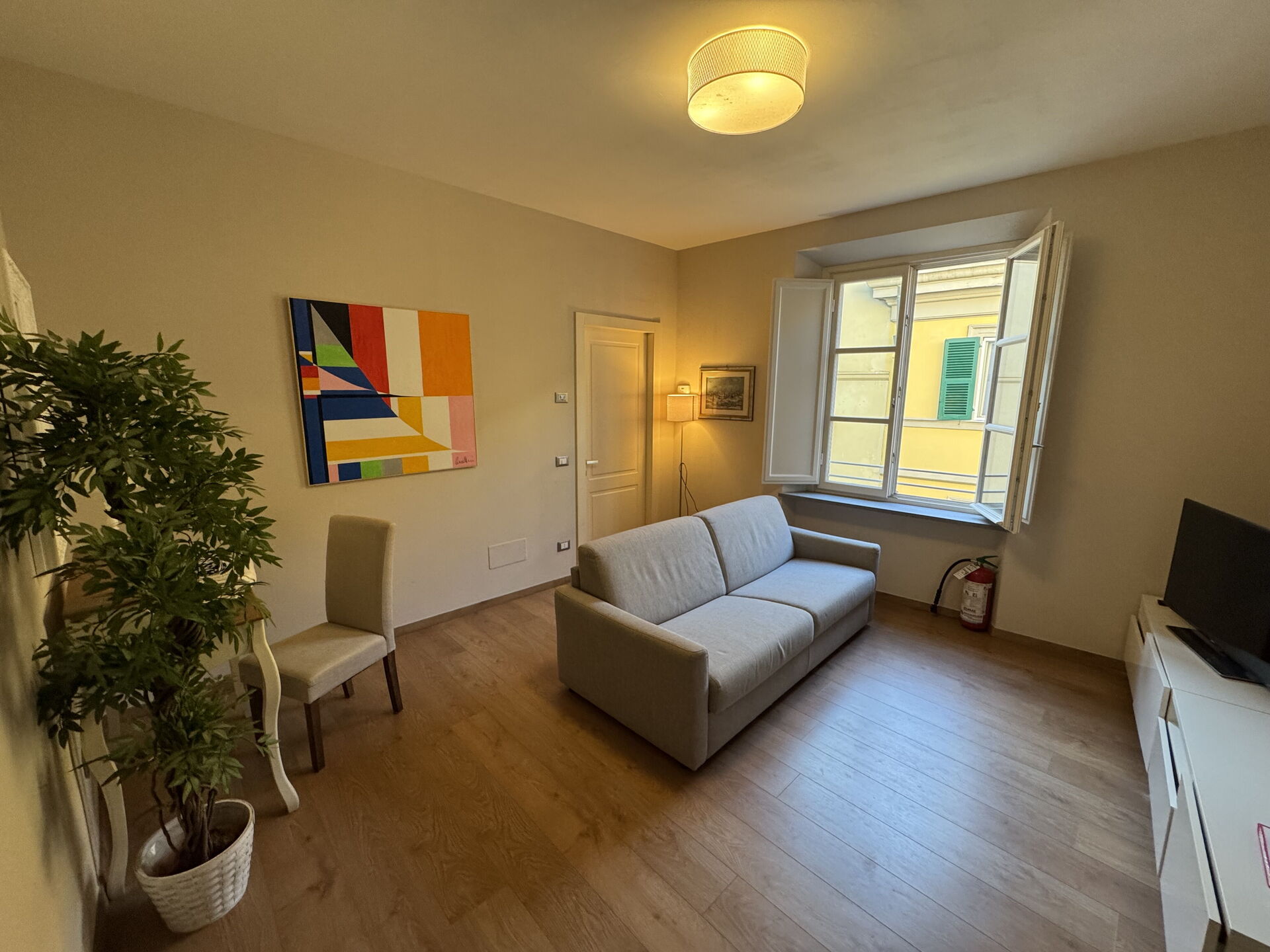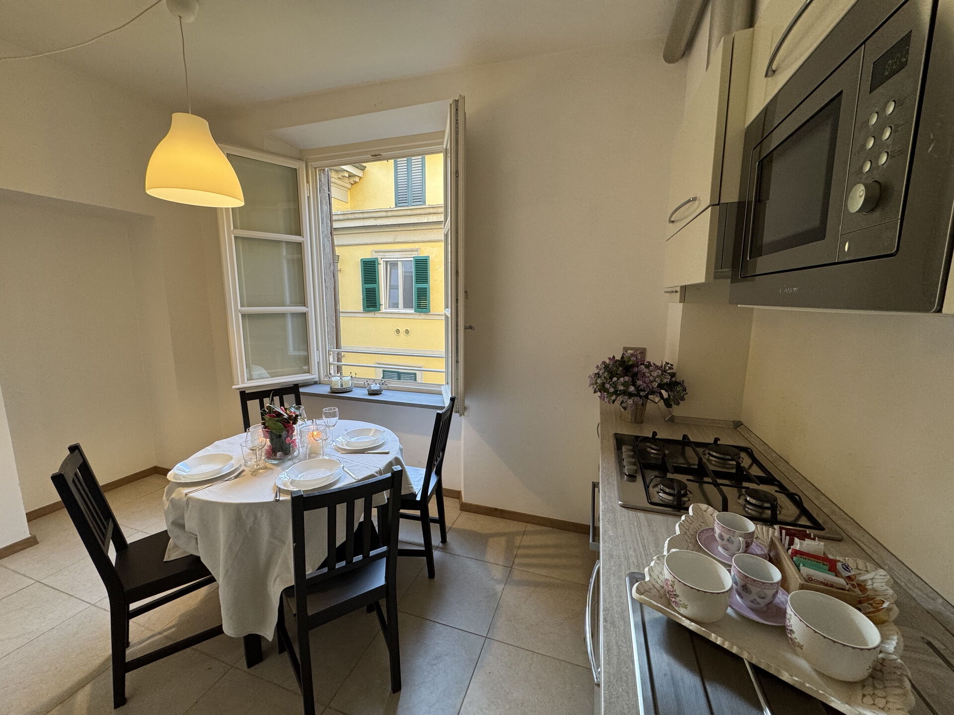 Nach Ankunft werden Sie eine hübsche, saubere und gut gepflegte Unterkunft finden, mit Ausblick auf die Stadt perfekt für einen friedlichen Toskana-Urlaub. Egal womit Sie Ihre Tage hier verbringen - Einkaufen, Sightseeing, Museumsbesuche oder einfach nur durch die Landschaft fahren, wenn Sie wieder in Ihrem Ferienheim ankommen, können Sie sich mit Familie und Freunden entspannen, um Ihren Toskana-Tag perfekt ausklingen zu lassen. Wenn Sie gerne für Familie und Freunde kochen, werden Sie sich über die gut ausgestattete Küche freuen mit Kaffeemaschine, Mikrowelle, Toaster, Herd und Kühlschrank, sowie ausreichend Geschirr und Besteck für bis zu vier Personen.