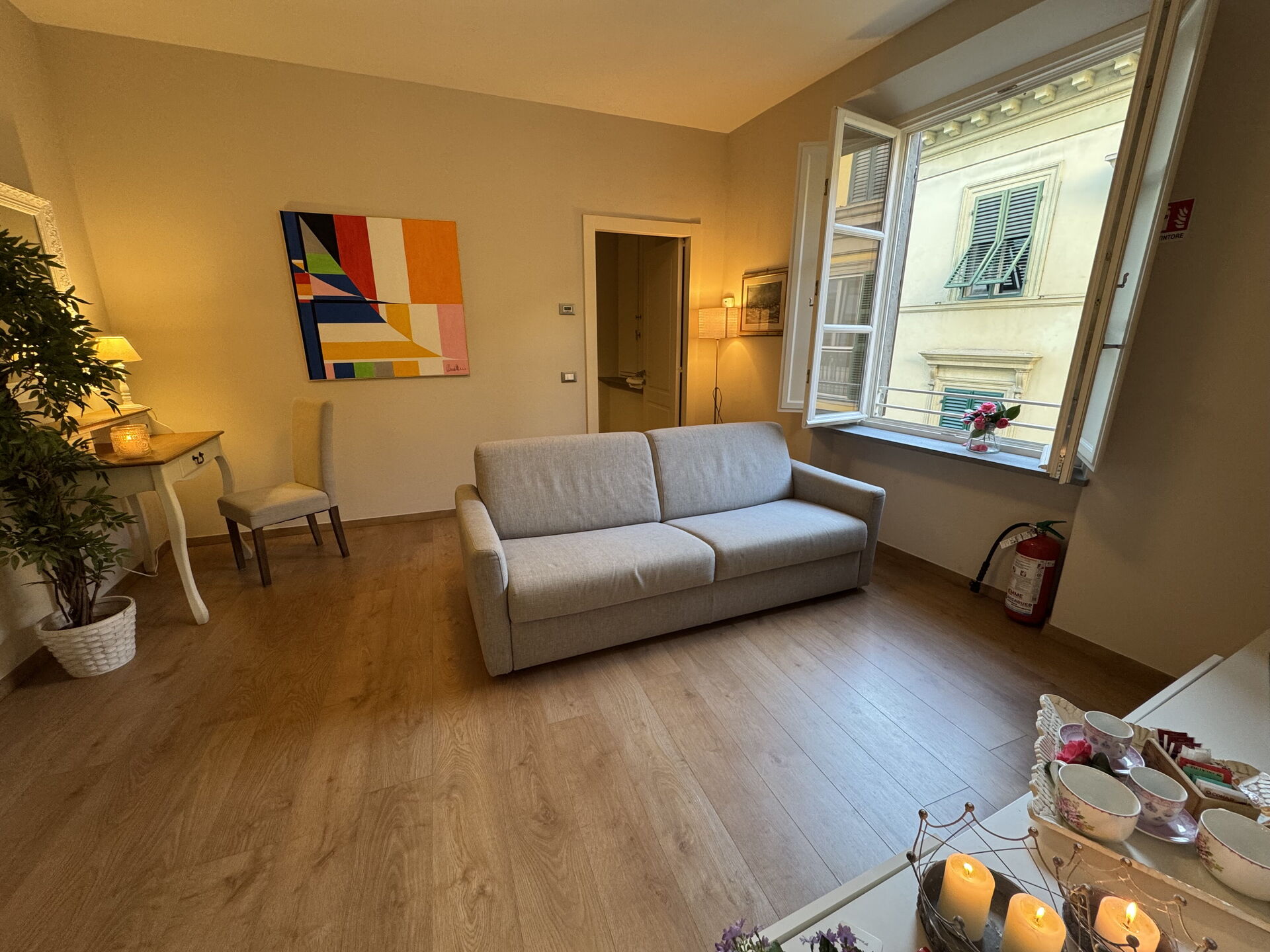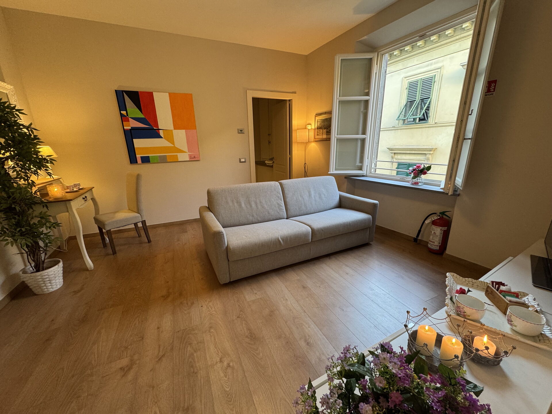 Die Gäste können einen Spaziergang auf der von Bäumen gesäumten Stadtmauer unternehmen, die nur wenige Schritte von der Wohnung entfernt liegt und einen privilegierten Blick auf die Stadt bietet. Von der 12 m hohen Mauer aus hat man einen einzigartigen Blick auf die wichtigsten Monumente, die Glockentürme, den Palazzo Pfanner mit seinem Garten, den Torre Guinigi mit seinen Steineichen und den Botanischen Garten.