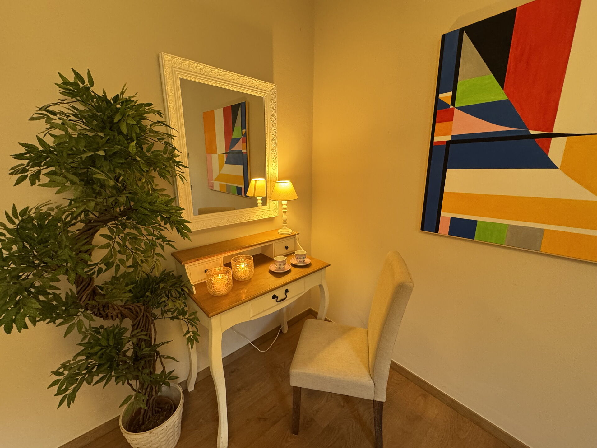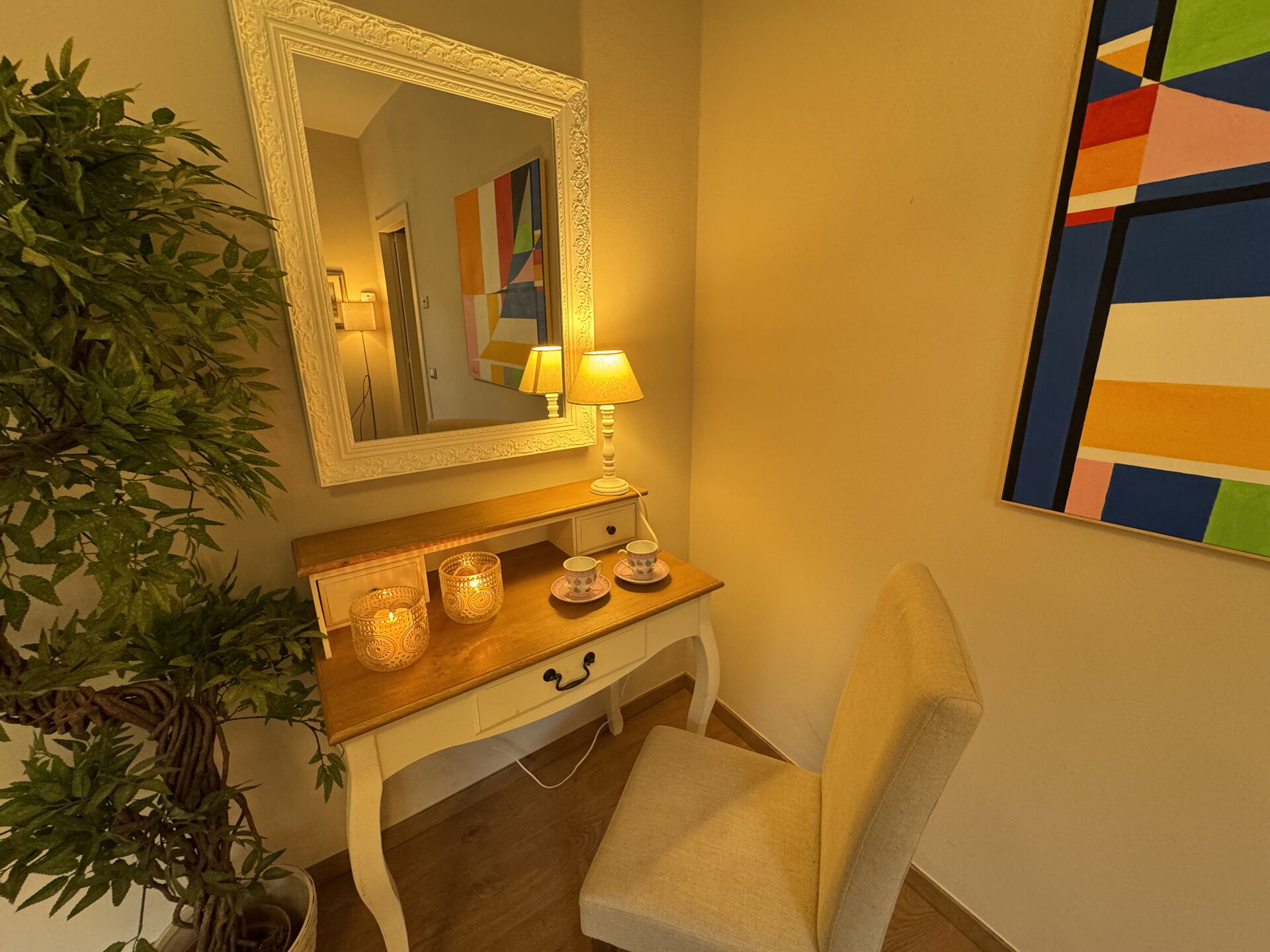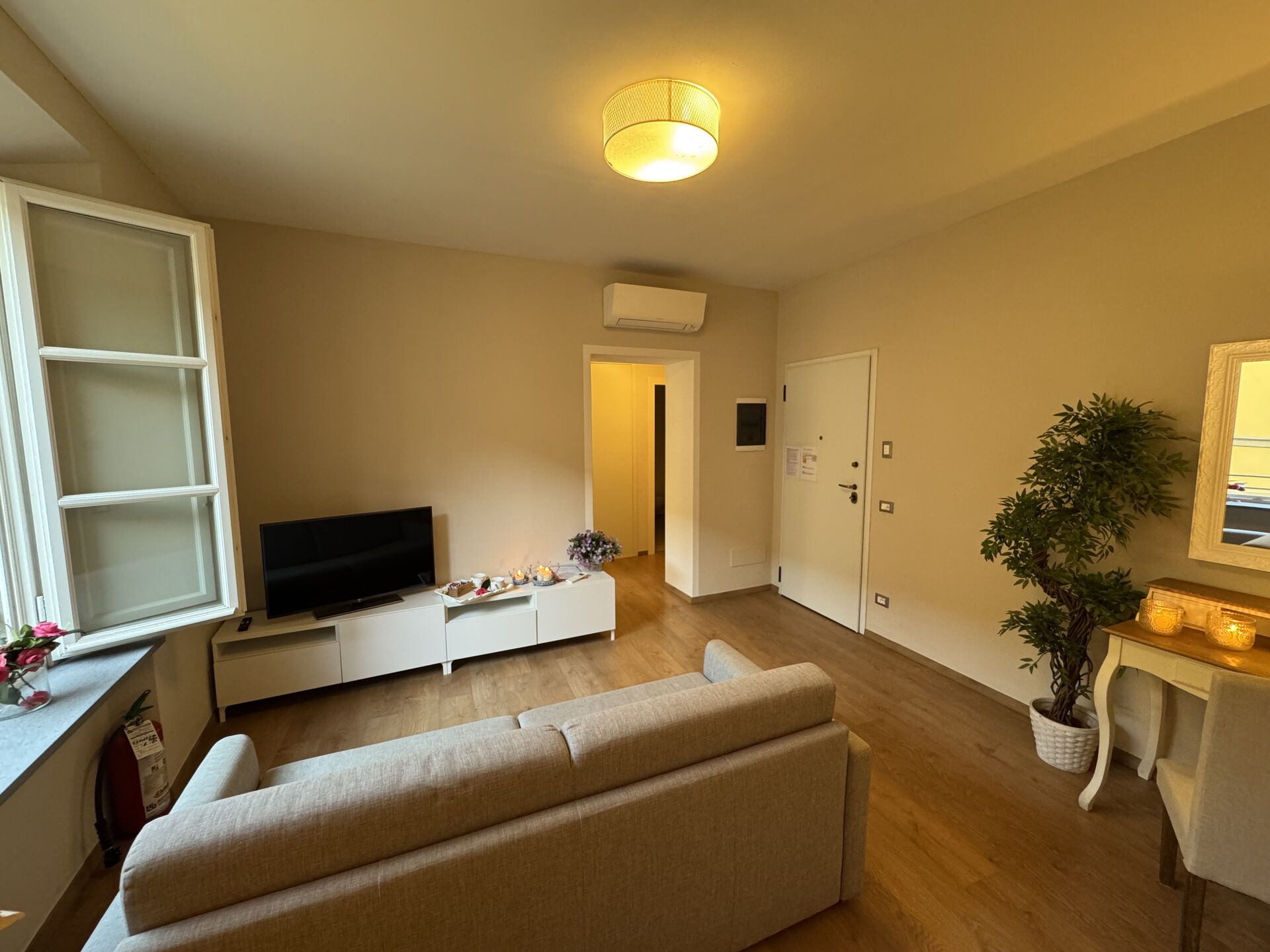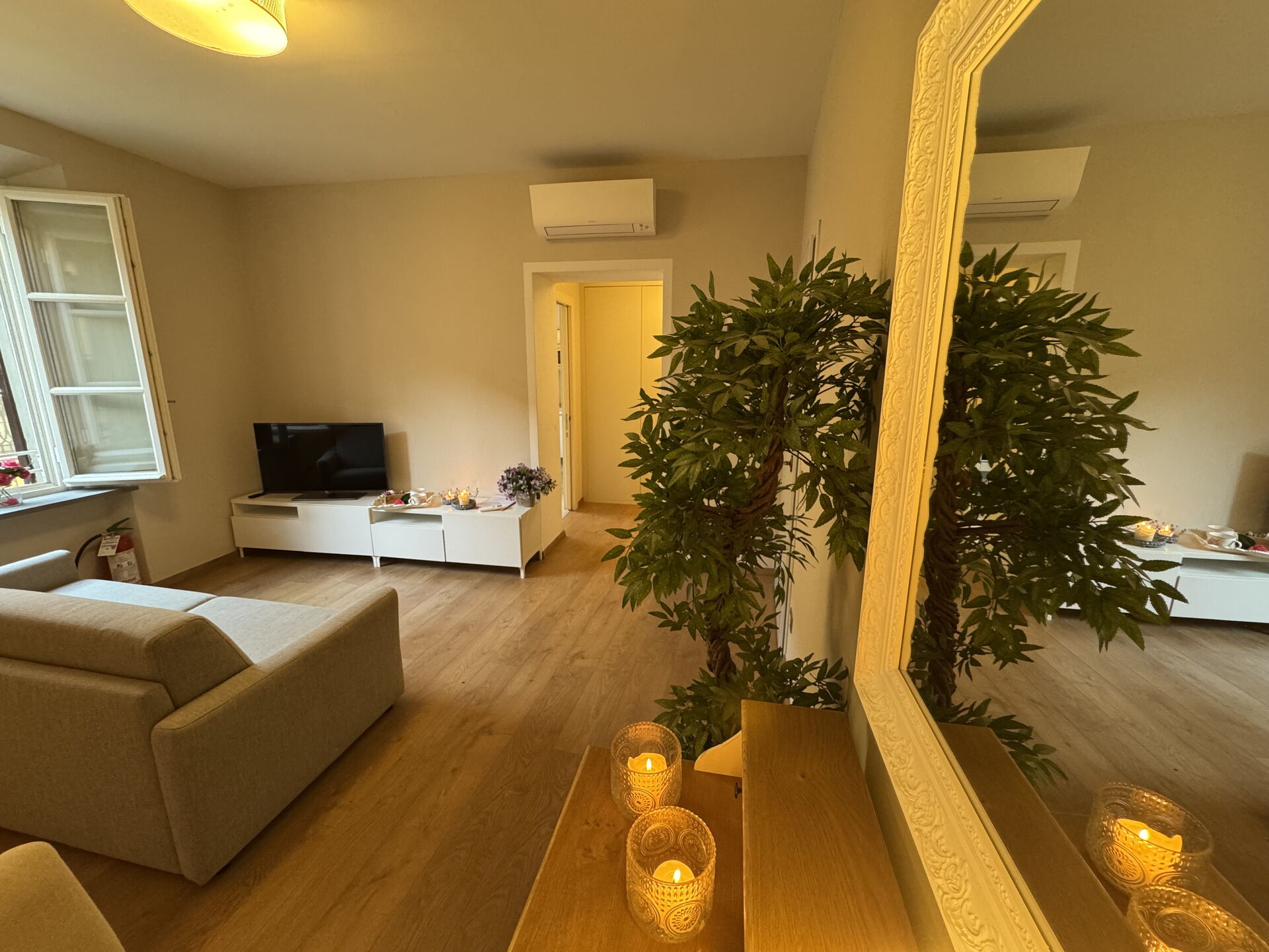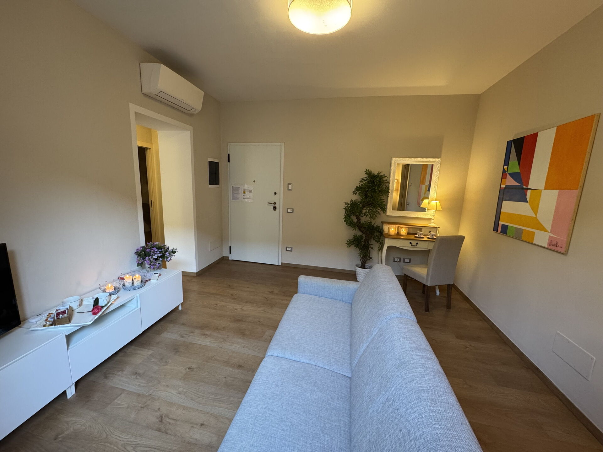 Wohnzimmer: Schreibtisch, Doppel-Schlafsofa, WiFi Internet, Klimaanlage, TV, CO2 Detektor.