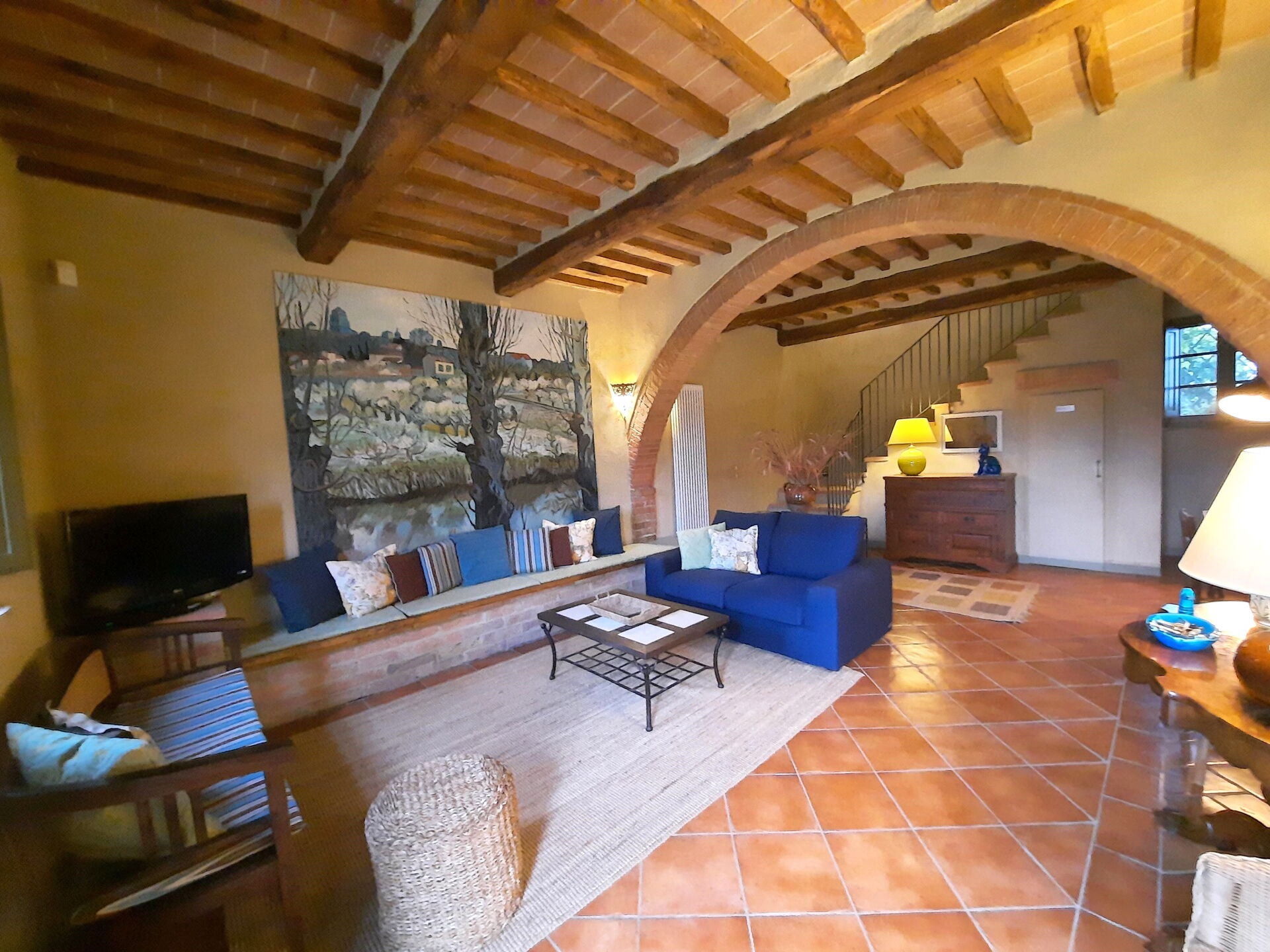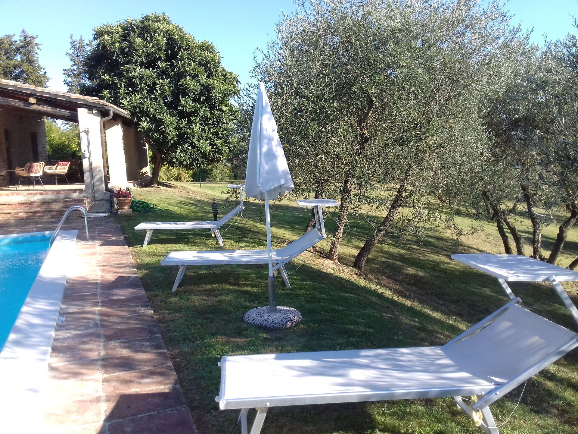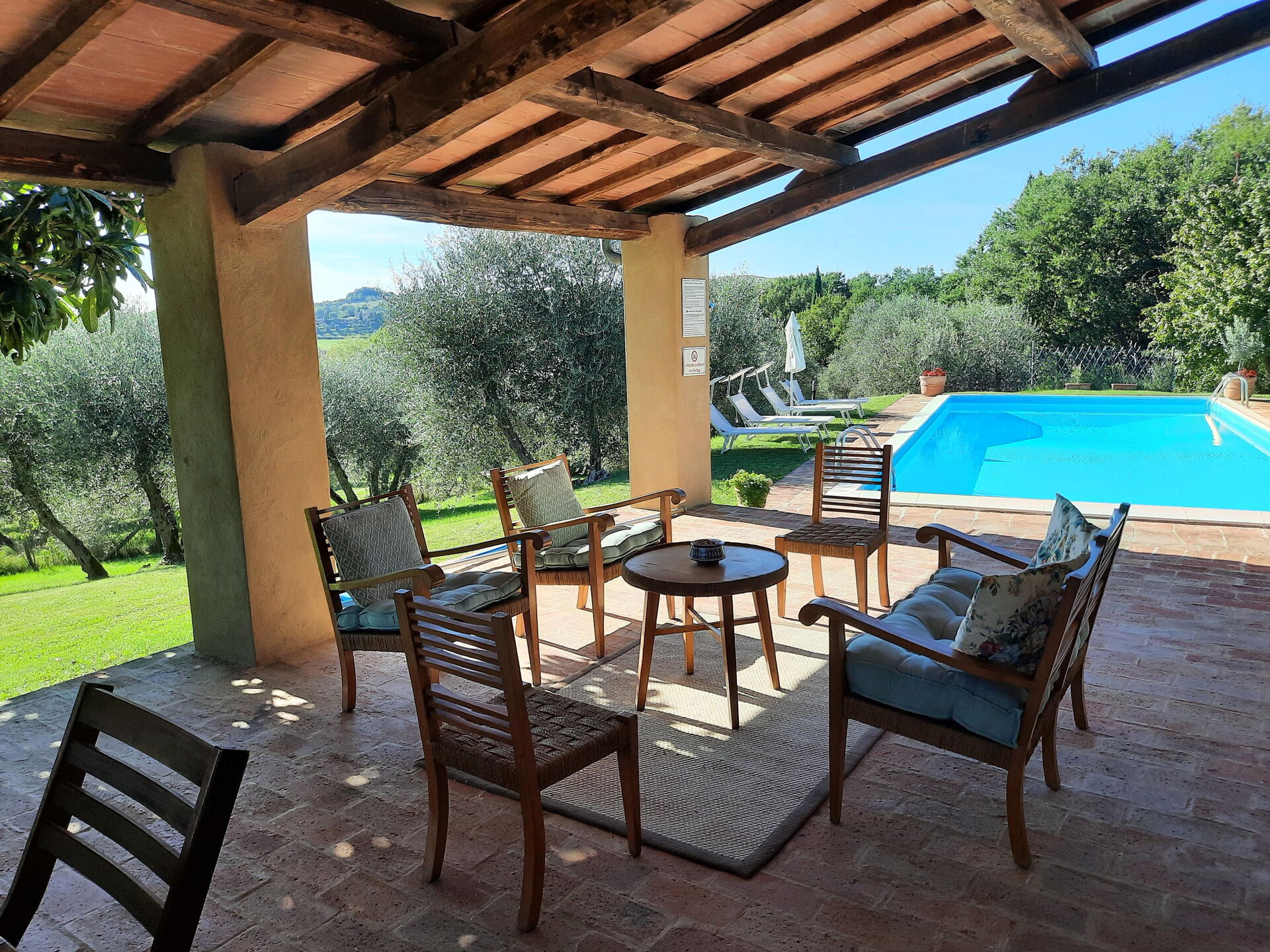 Nach Ankunft werden Sie von dem Besitzer oder Manager begrüßt, der Ihnen die hübsche, saubere und gut gepflegte Unterkunft zeigt, mit Blick auf der Hügel ideal für einen erholsamen Toskana-Urlaub. Egal womit Sie Ihre Tage hier verbringen - Einkaufen, Museumsbesuche, Sightseeing oder einfach nur durch die Landschaft fahren, wenn Sie wieder in Ihrem Ferienheim ankommen, können Sie sich an Ihrem Pool mit Familie und Freunden ausruhen, um Ihren Toskana-Tag perfekt ausklingen zu lassen. Draußen steht Ihnen eine Veranda und ein Grill zur Verfügung. Wenn Sie gerne für Familie und Freunde kochen, werden Sie sich über die gut ausgestattete Küche freuen mit Kaffeemaschine, Mikrowelle, Toaster, Herd und Kühlschrank, sowie ausreichend Geschirr und Besteck für bis zu zehn Personen. Wenn Sie lieber 'al Fresco' speisen, dann können Sie das auf der komplett eingerichteten Veranda tun, wo Sie gleichzeitig das schöne Wetter beim Essen genießen können.