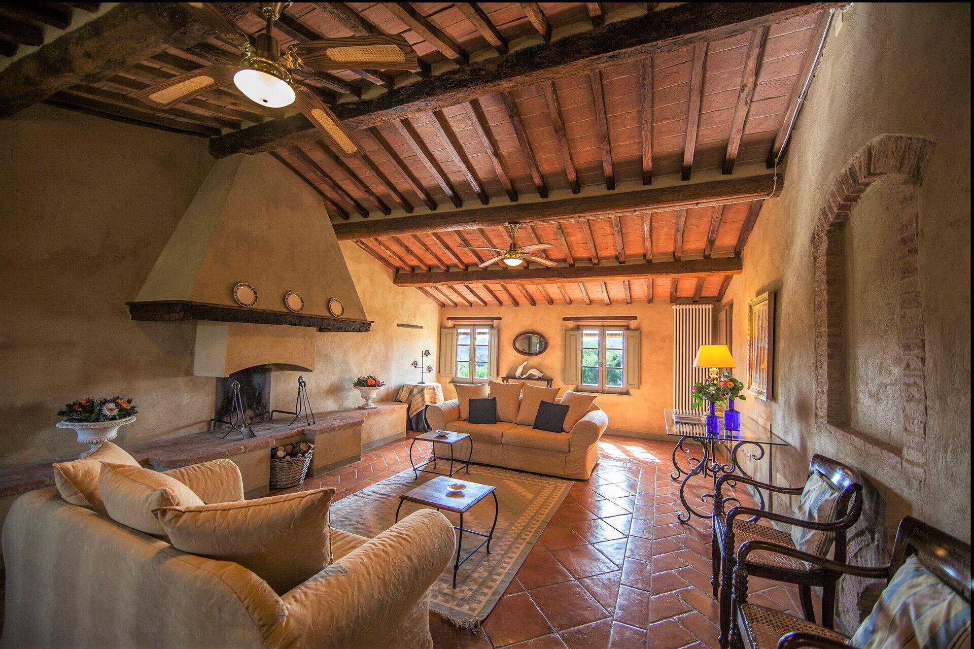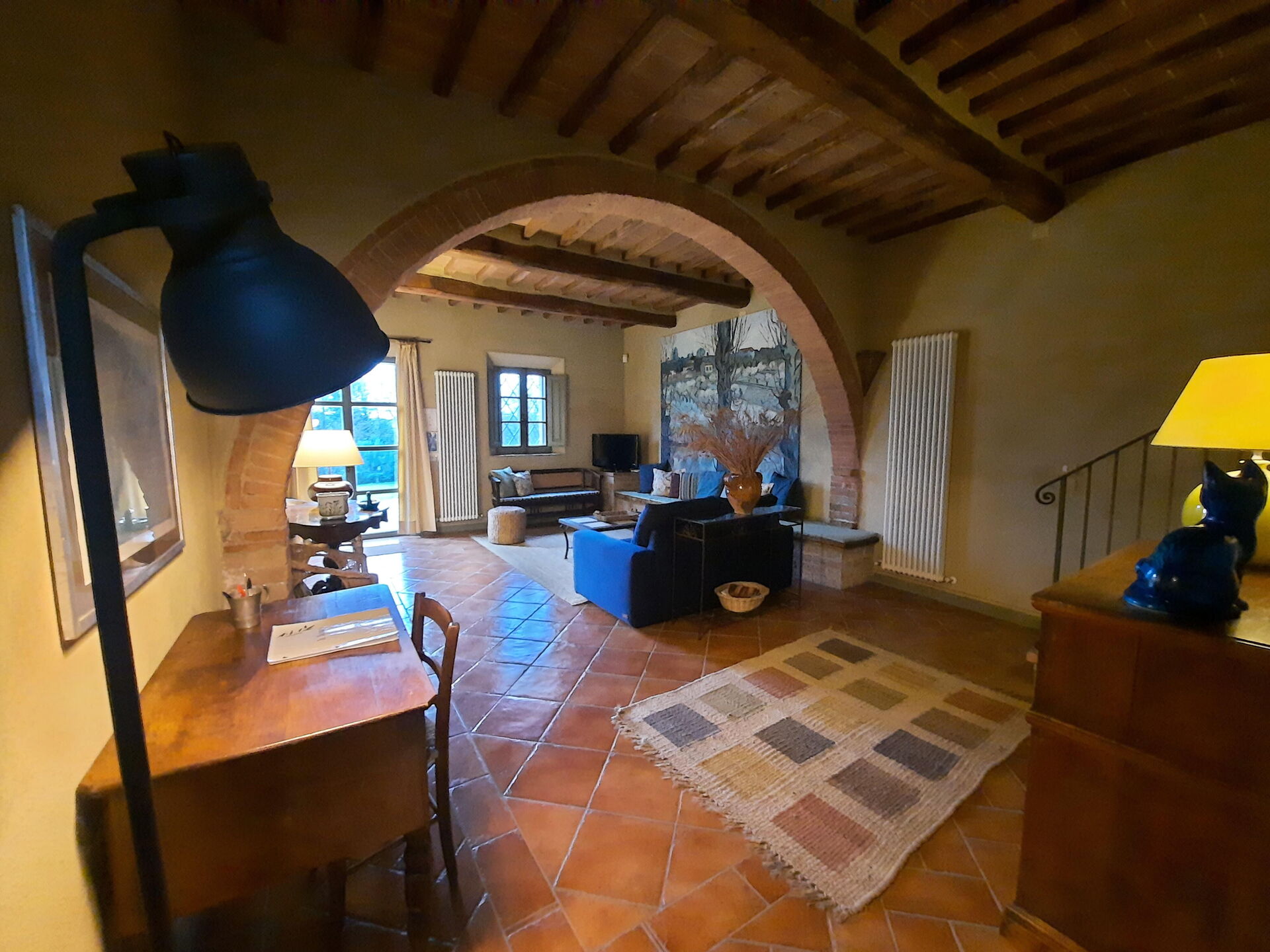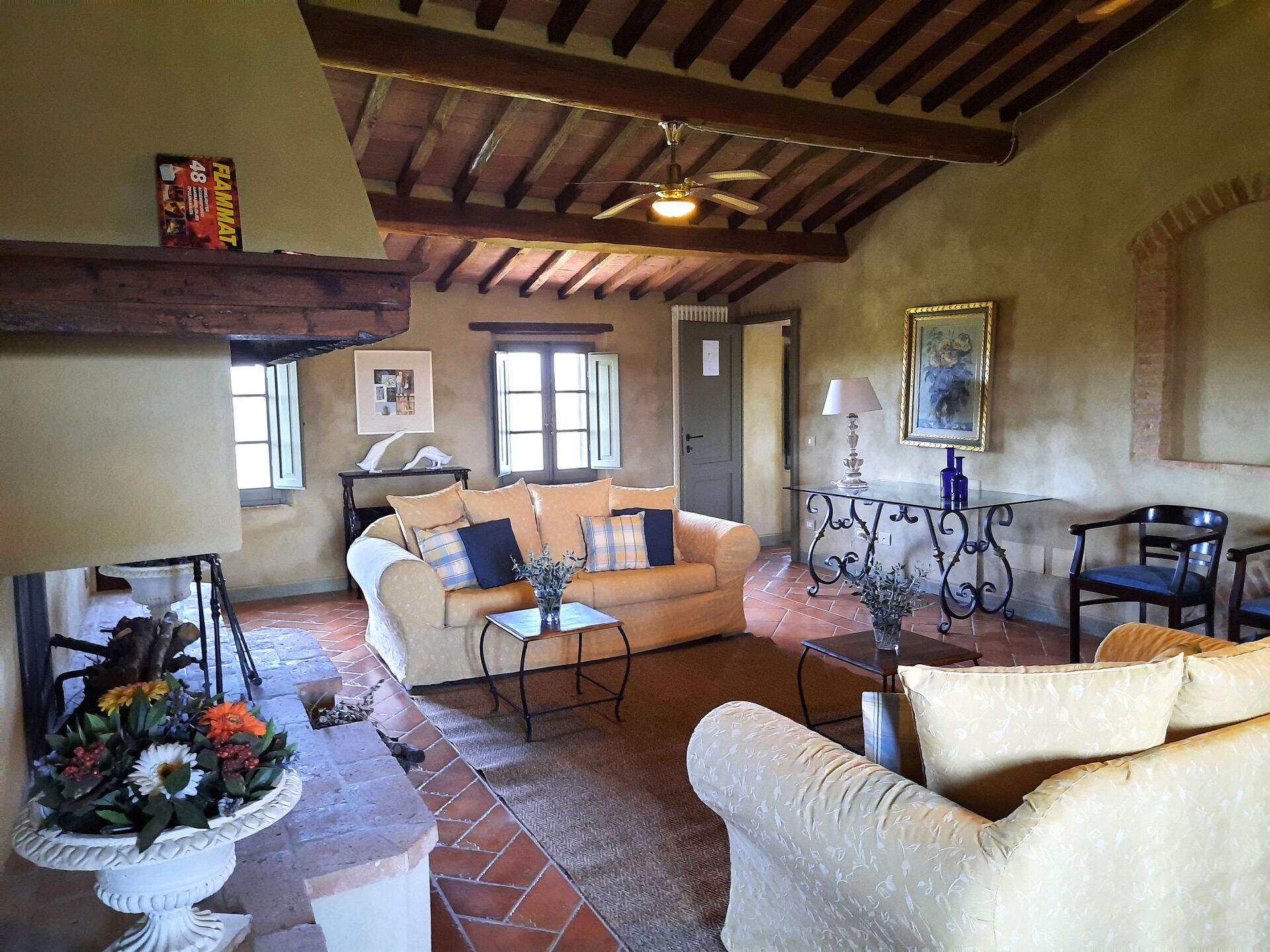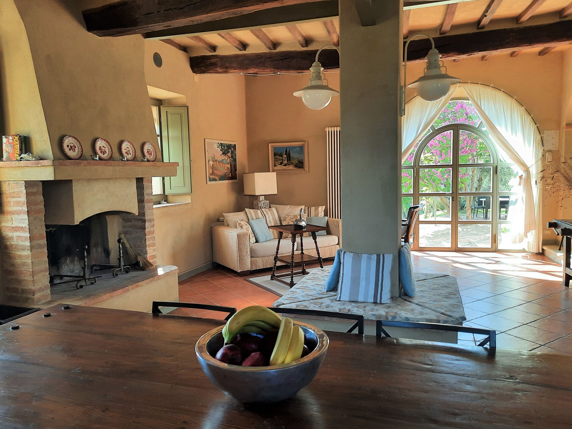 Wohnküche: gut ausgestattete Küche, Esstisch (Personen: 10), Spülmaschine, Kühlschrank, Tiefkühler, Mikrowelle, Herd, Toaster, Bügeleisen, Italienische Kaffeemaschine, Amerikanische Kaffeemaschine, Waschmaschine, Sofa, Sessel, Kamin, WiFi Internet, Internet, Fliegengitter, Kinderhochstuhl, tragbarer Ventilator, Ausgang auf den Garten, Ausgang auf den Patio.