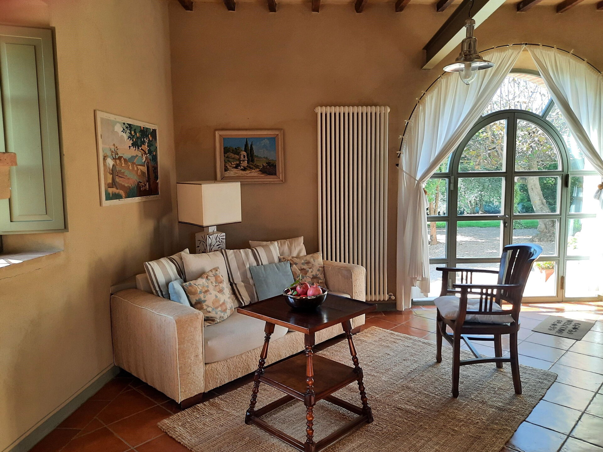Wohnzimmer: drei Sofas, zwei Sessel, Schreibtisch, WiFi Internet, Internet, Satelliten-TV, Fliegengitter, tragbarer Ventilator, Ausgang auf den Garten.