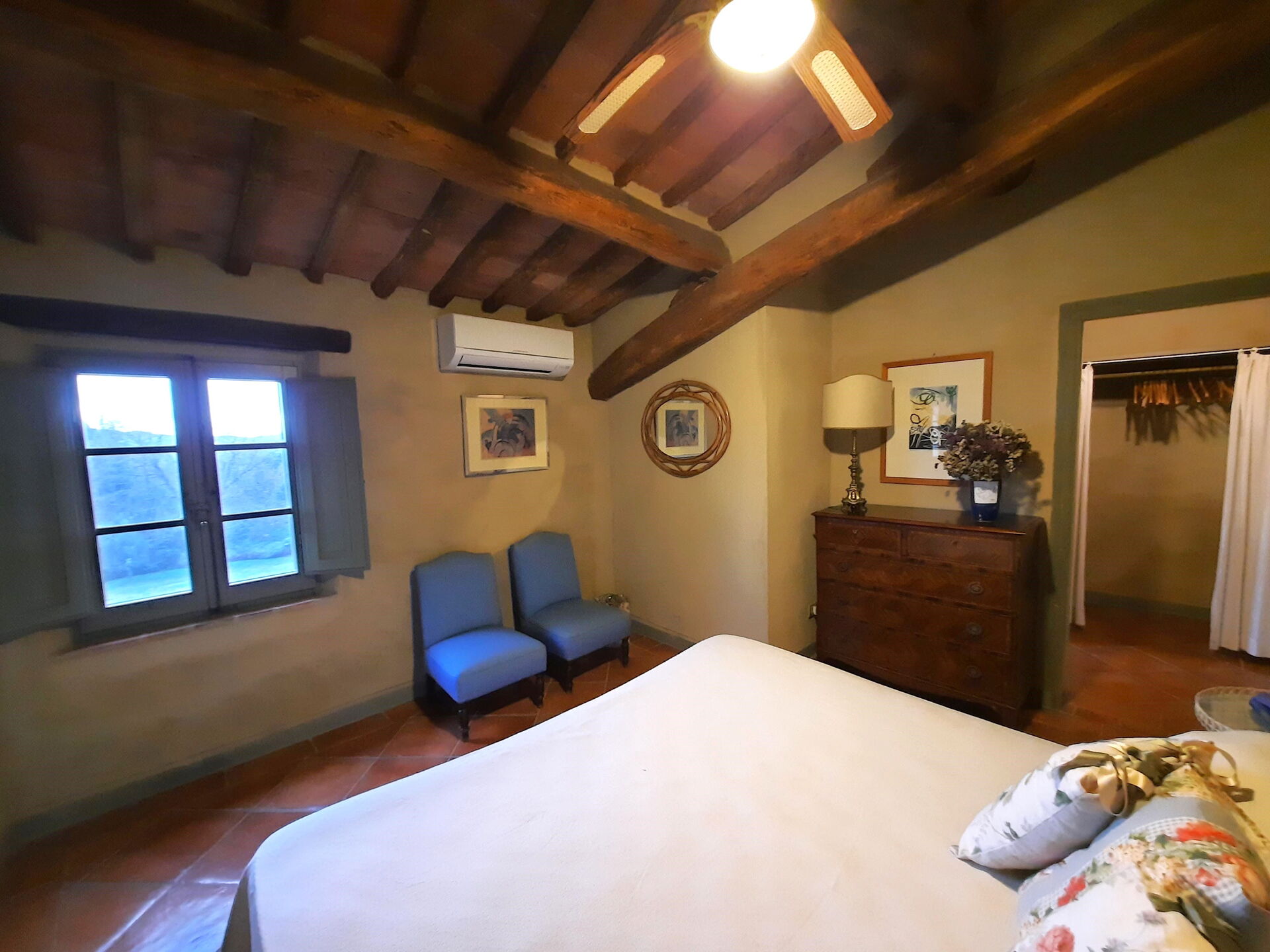 Schlafzimmer mit Bad 2: Doppelbett (Breite: 1.7m, Länge: 1.9m), WiFi Internet, Internet, Klimaanlage, Fliegengitter, Deckenventilator, zwei Sessel, Waschbecken, WC, Bidet, Dusche, Fön.