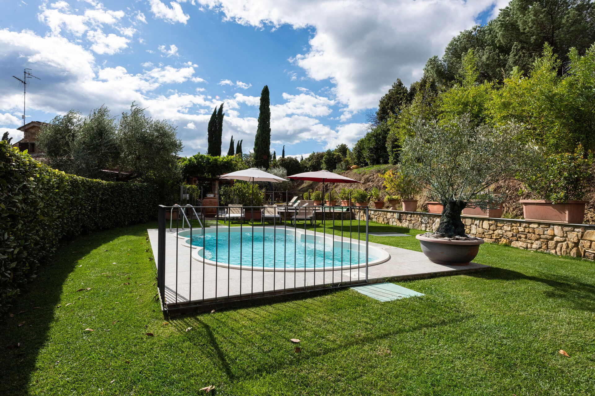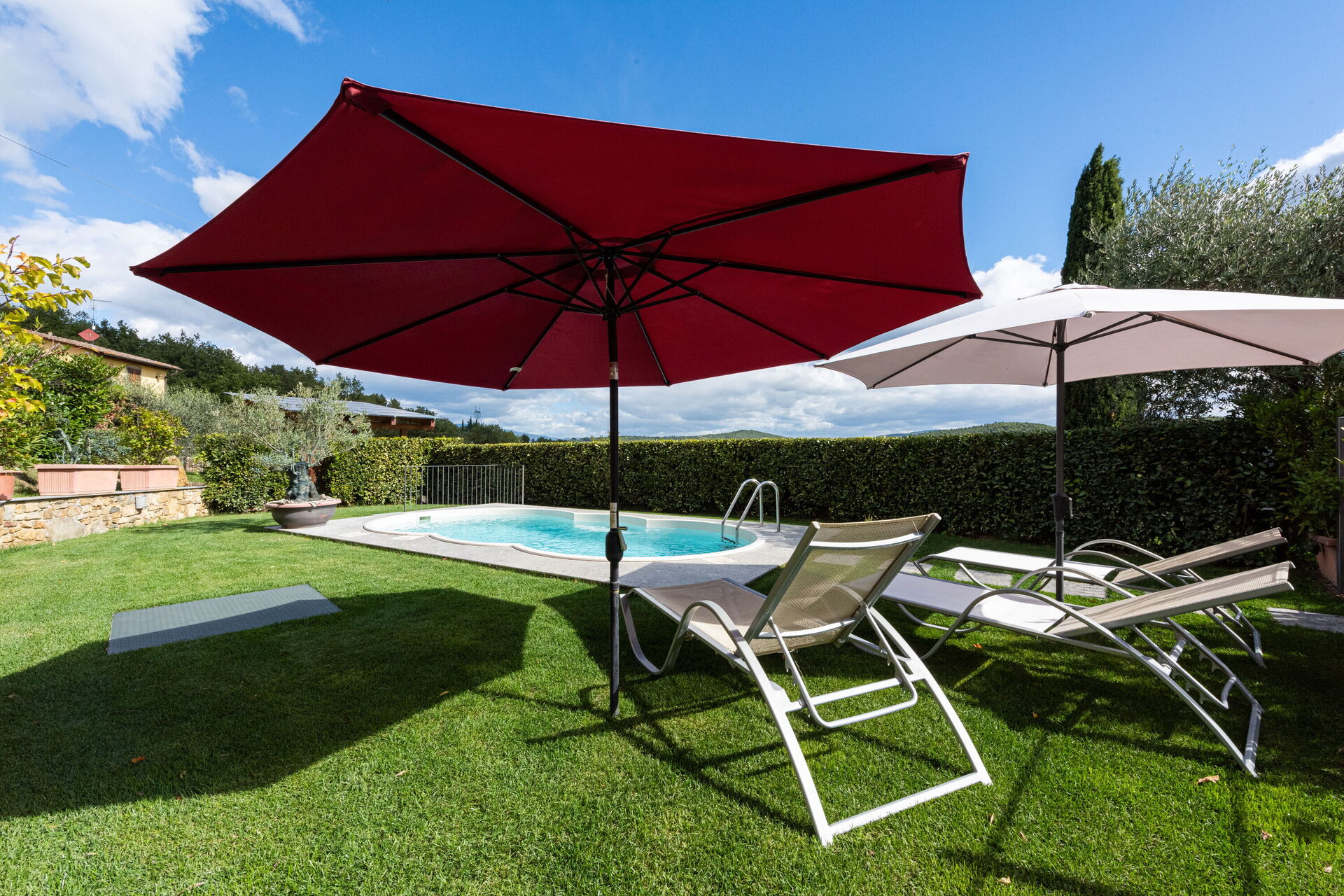 Bei Ankunft werden Sie eine schöne, saubere und gut gepflegte Unterkunft finden, mit Ausblick auf der Hügel ideal für einen erholsamen Toskana-Urlaub. Egal womit Sie Ihre Tage hier verbringen - Sightseeing, Museumsbesuche, Einkaufen oder einfach nur durch die Landschaft fahren, wenn Sie wieder in Ihrem Ferienheim ankommen, können Sie sich an Ihrem Pool mit Familie und Freunden entspannen, um Ihren Toskana-Tag perfekt ausklingen zu lassen. Draußen können Sie einen Grill und einen Whirlpool nutzen. Wenn Sie gerne für Familie und Freunde kochen, werden Sie sich über die gut ausgestattete Küche freuen mit Kaffeemaschine, Mikrowelle und Kühlschrank, sowie ausreichend Geschirr und Besteck für bis zu sechs Personen. Wenn Sie lieber 'al Fresco' speisen, dann können Sie das auf der Garten tun, wo Sie gleichzeitig das schöne Wetter beim Essen genießen können.