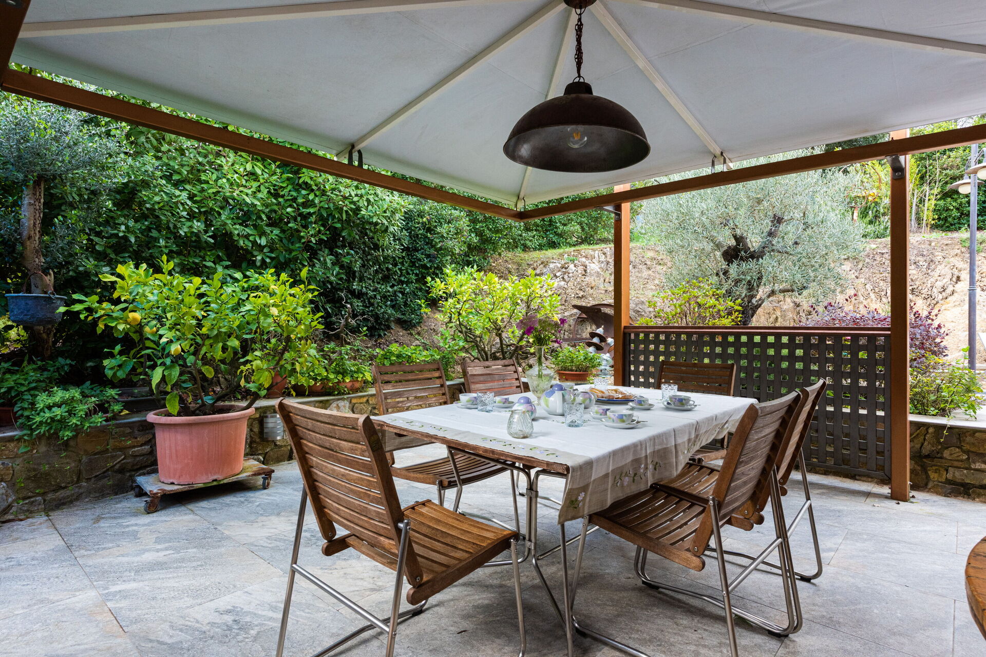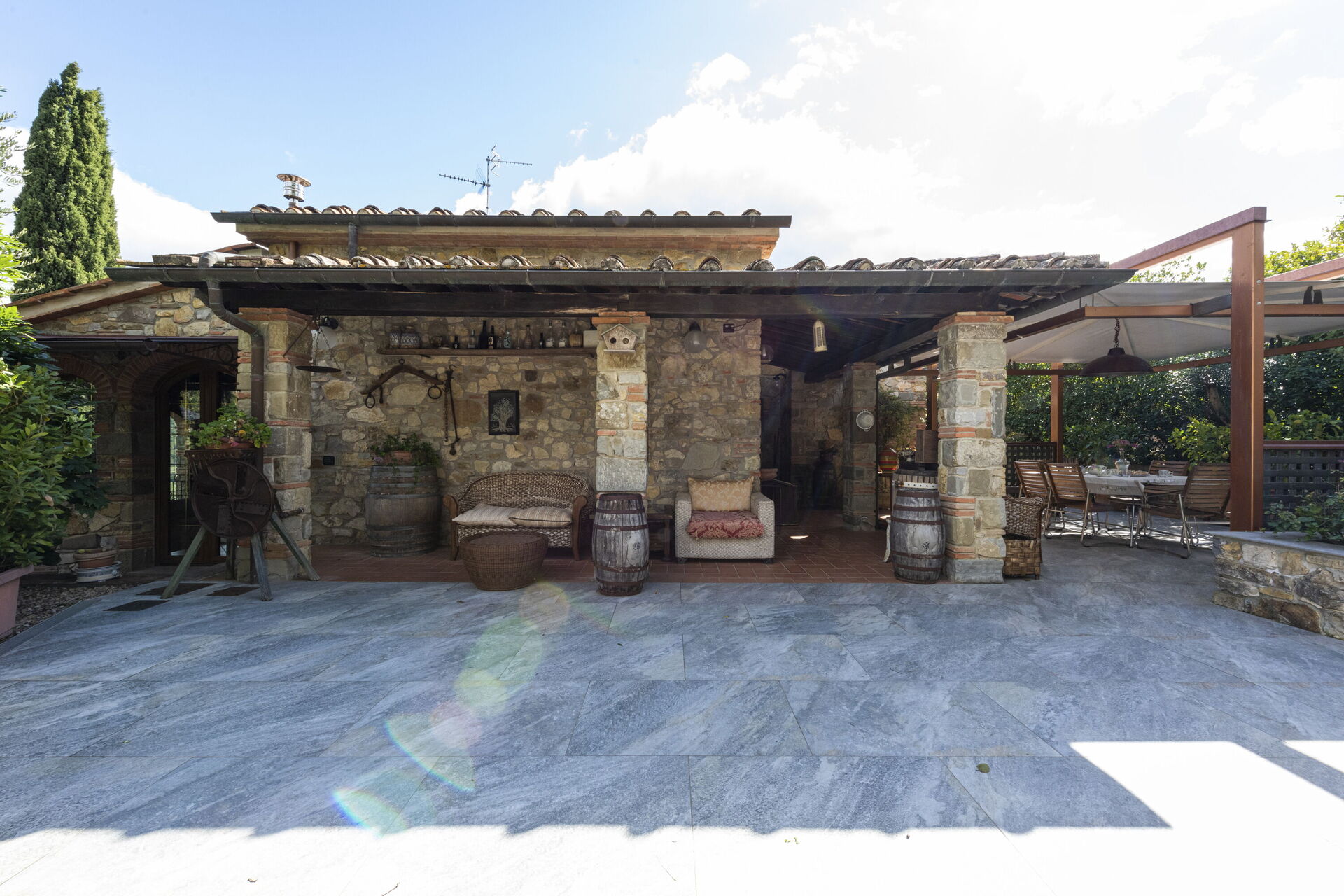 Garten: Schwimmbad (privat, Breite: 6.5m, Länge: 3.5m, Tiefe: 1.4m, Außen), Heißwasser-Whirlpool im Freien, Grill, Außenbereich für das Essen im Freien, Esstisch, Pavillon, Gartenmöbel, Sonnenliege.