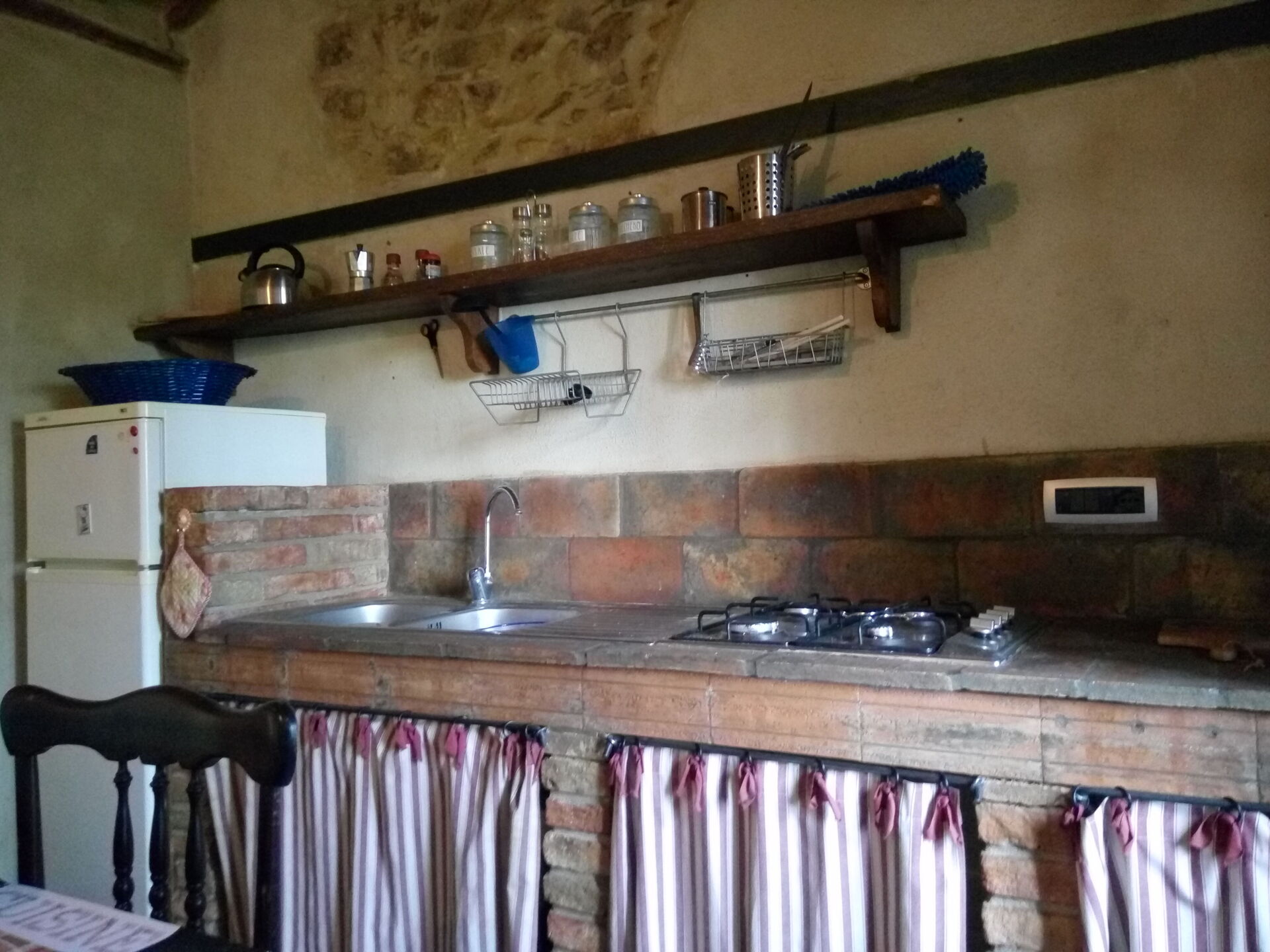 Speisen mit Freunden und Familie ist ein großer Bestandteil der italienischen Kultur. Nutzen Sie die Küche, um Mahlzeiten aus lokalen Produkten vorzubereiten, während Sie im Urlaub sind. Die Küche kommt mit Kaffeemaschine und Kühlschrank, sowie ausreichend Geschirr und Besteck für bis zu drei Personen.